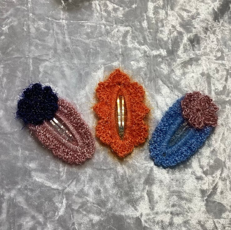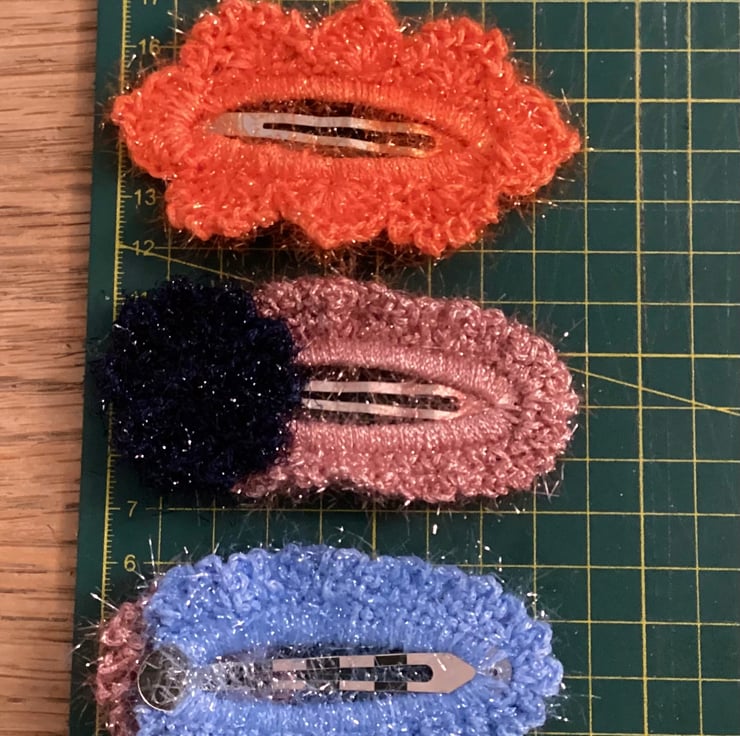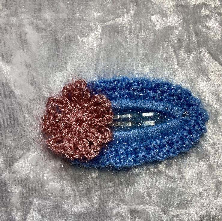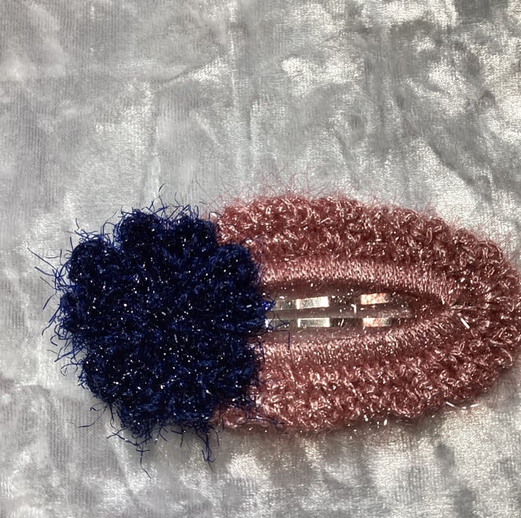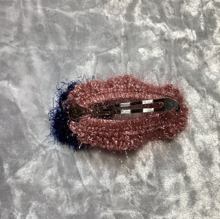 To make it I’ve used 7 cm metal hair clip and sparkly eyelash yard . Decorated 2 clips with crochet flower.