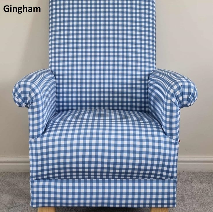 Blue Gingham Checked Fabric Adult Armchair Chair Check Nursery Small Kitchen