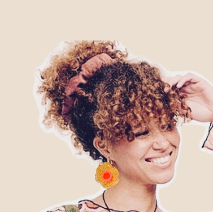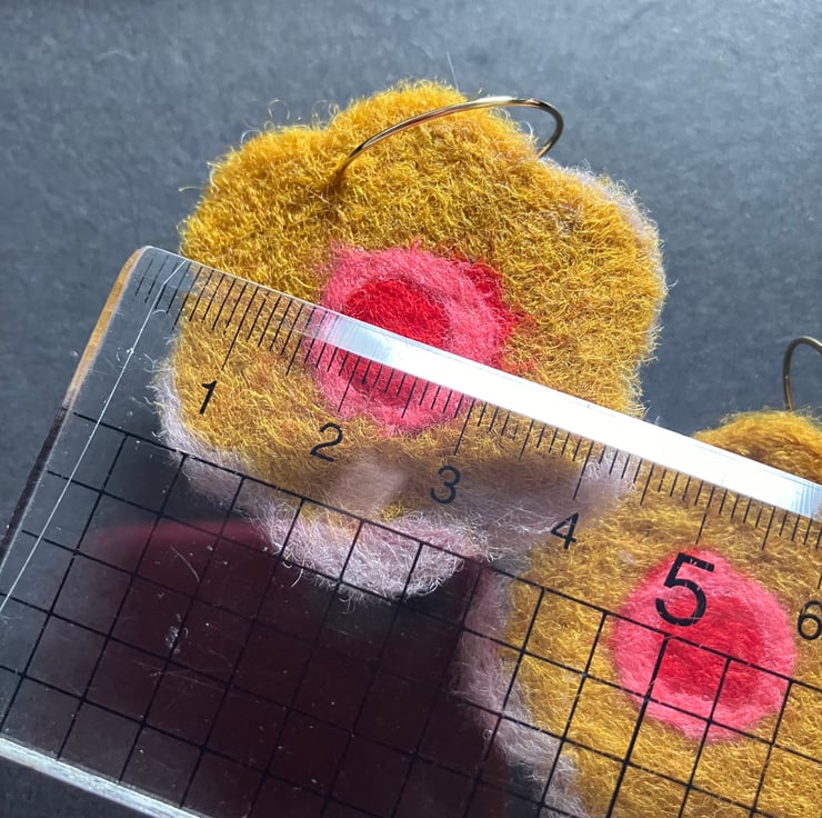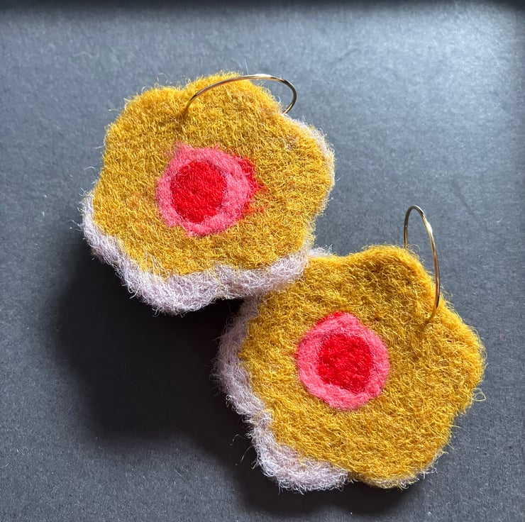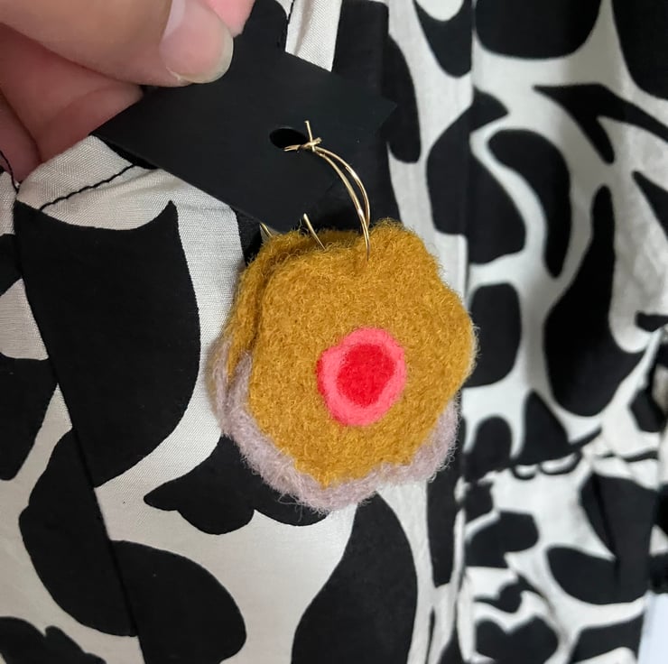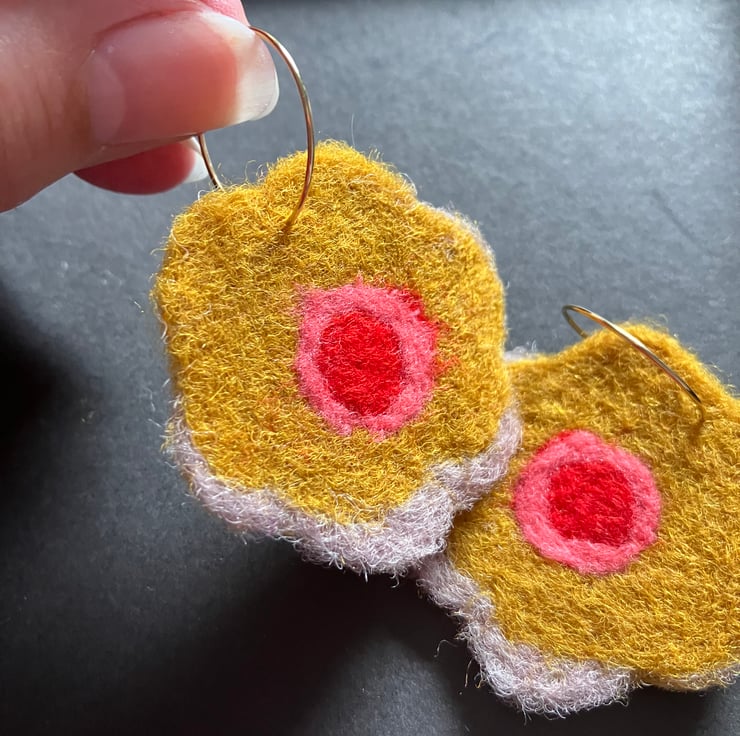 Cheerful statement flower earrings.Hand needle felted bold earrings 45mm with 30mm steel hoops gold colour . One off