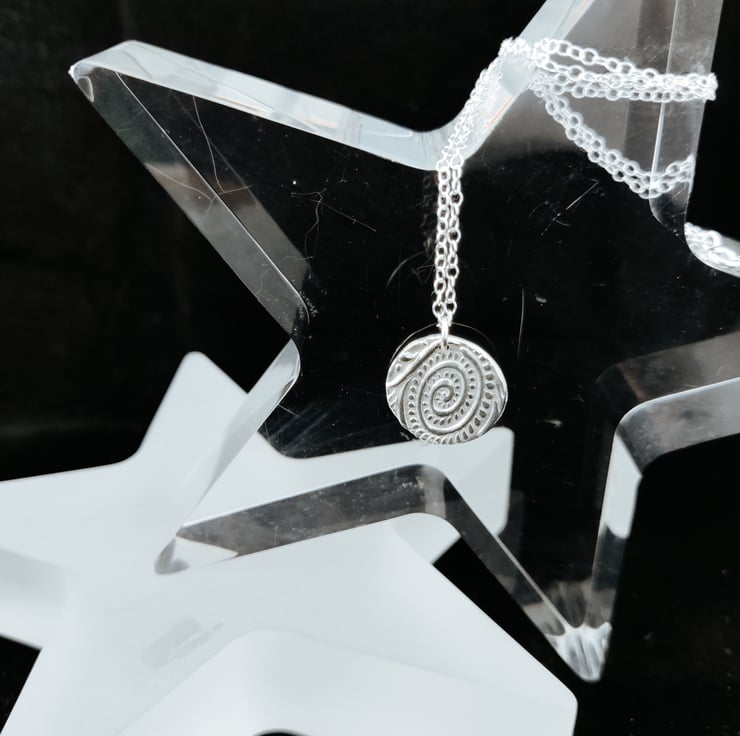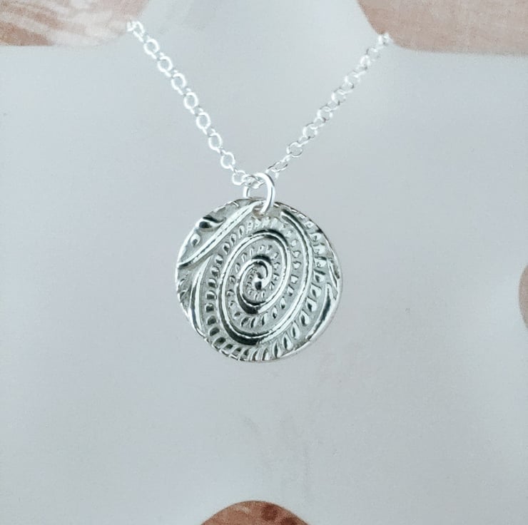 A beautiful Art Nouveau Style Fiddlehead design in fine silver (99.99%) the pendant size is 20mm.