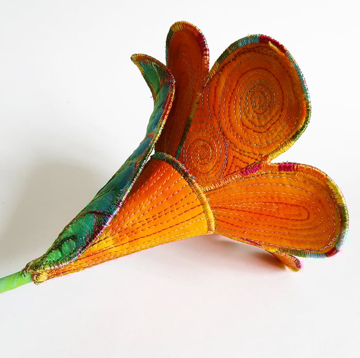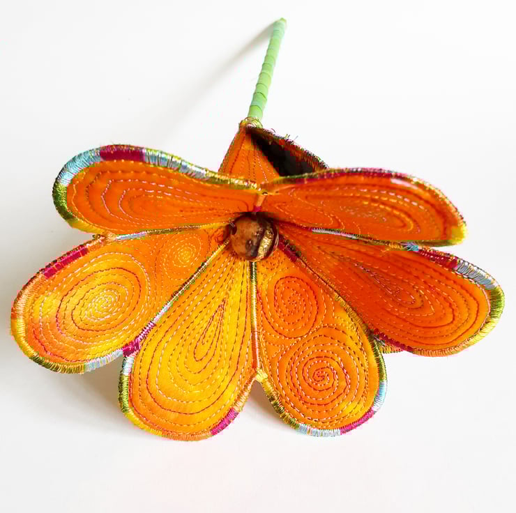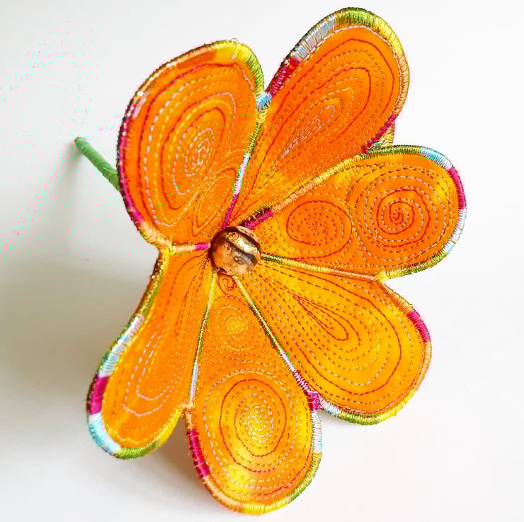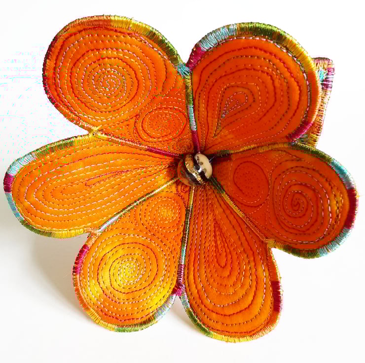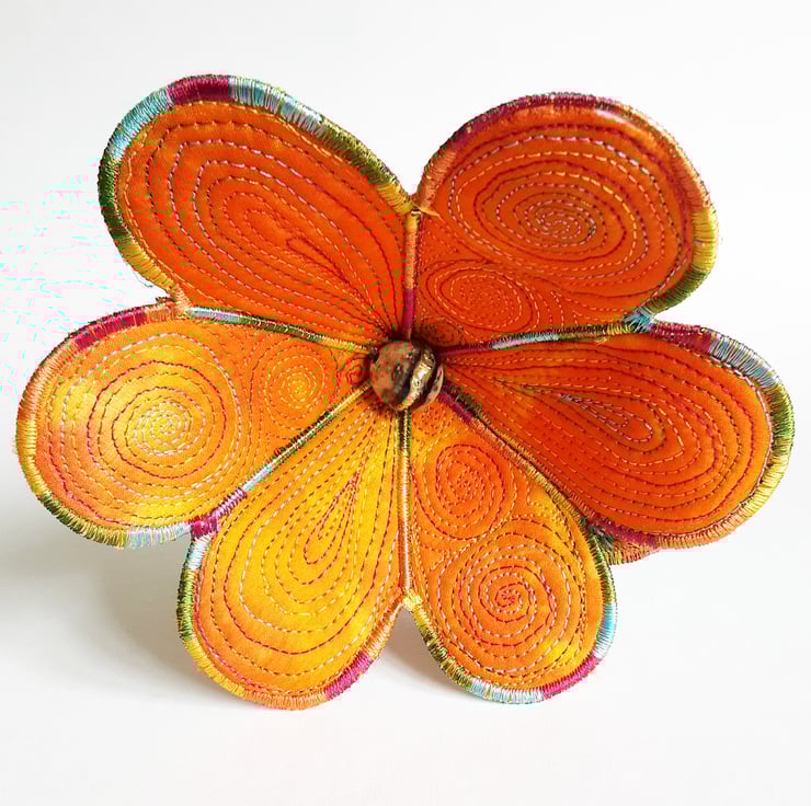 This is a handmade machine stitched 3D textile flower