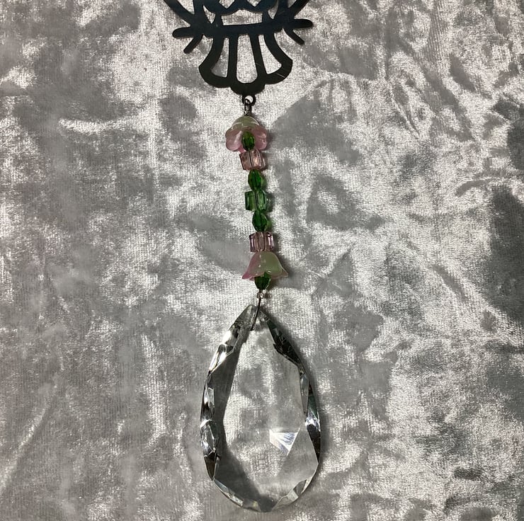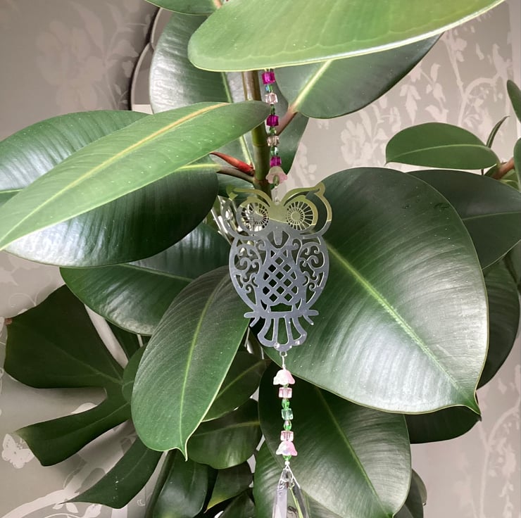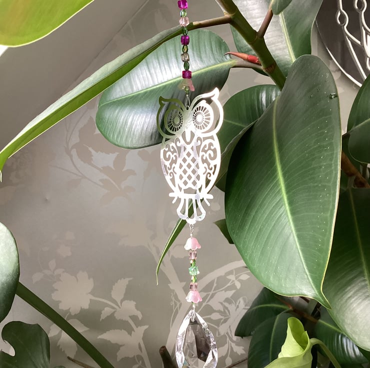 To make it I’ve used owl Sun Catcher embellished with crystal pendant, beads.