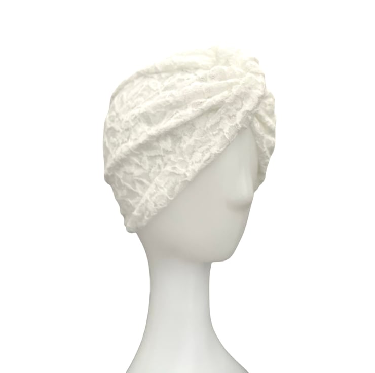 White Lace Twisted Turban Hat Head Wrap Summer Wedding Hat for Bride Ivory