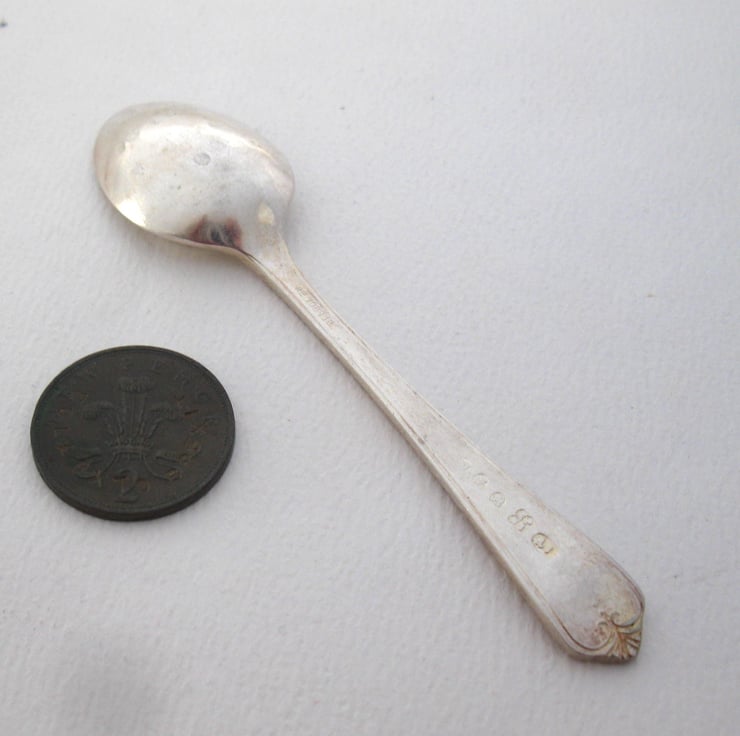You will receive the spoon shown in the photos, wear marks, tarnish and all. None of these affect its functionality as a coffeespoon but I am aware that the 'antiqued' look isn't for everybody. The black in the lettering is non-toxic water-based acrylic pigment and will last longer if you handwash it carefully without too much vigorous scrubbing.