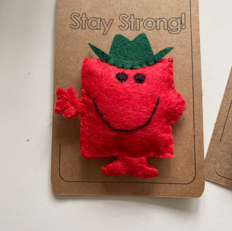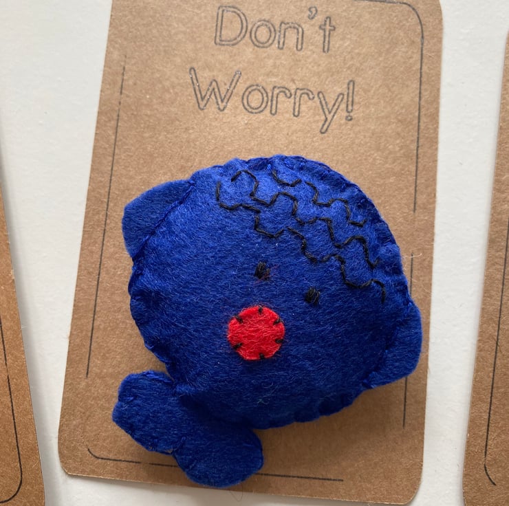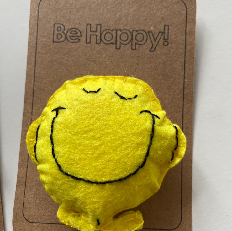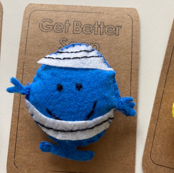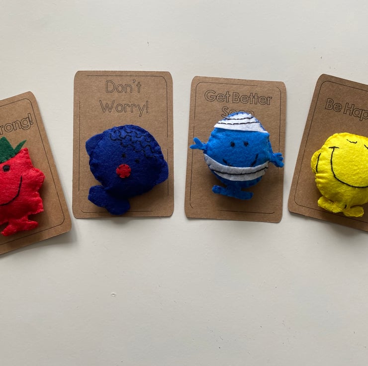 Handmade characters made with felt and embroidery thread and attached to card.