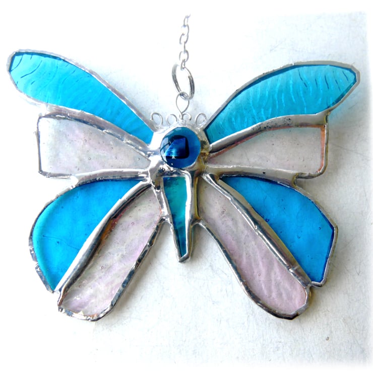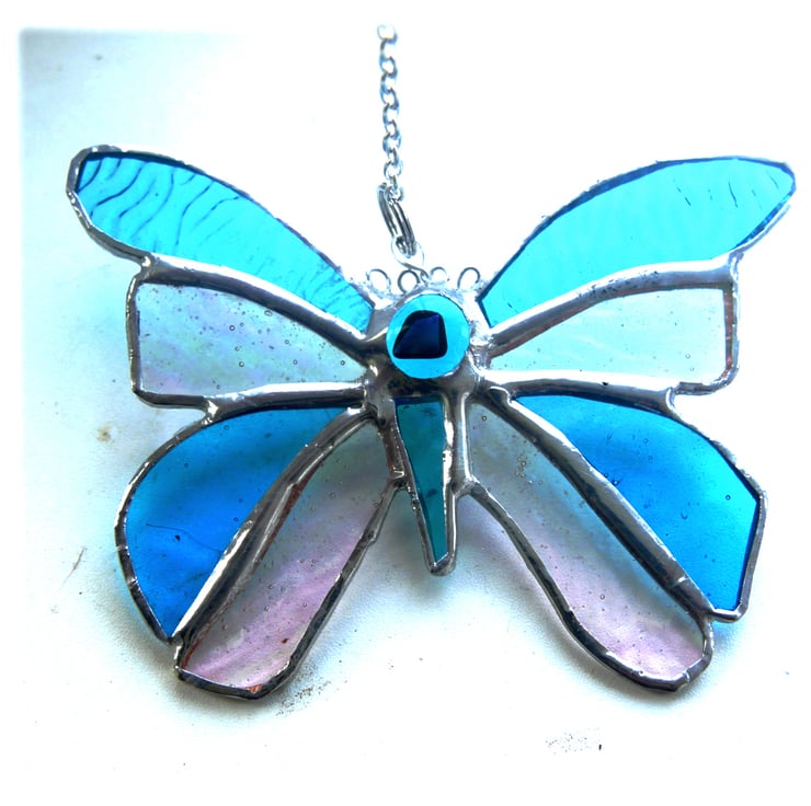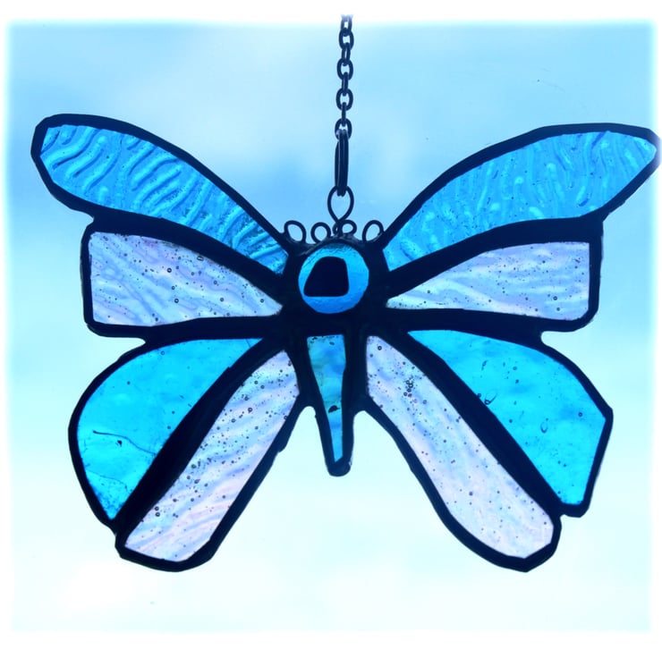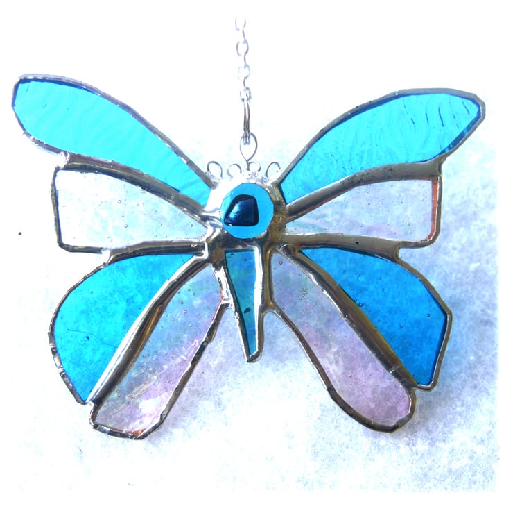 A butterfly made from lovely turquoise glass, this being the UK birthstone colour for December. The other sections of the butterfly are iridised textured clear glass to give it extra shimmer.