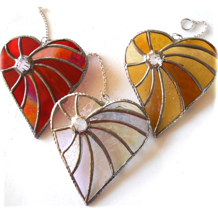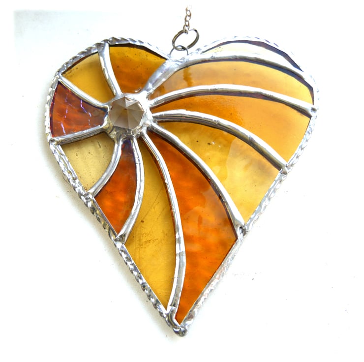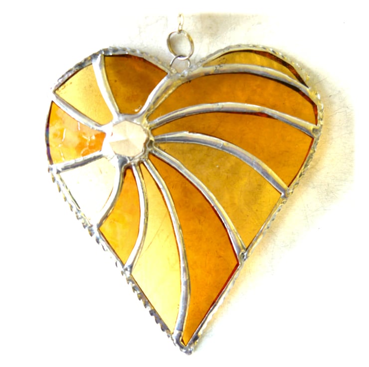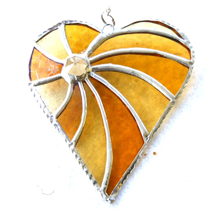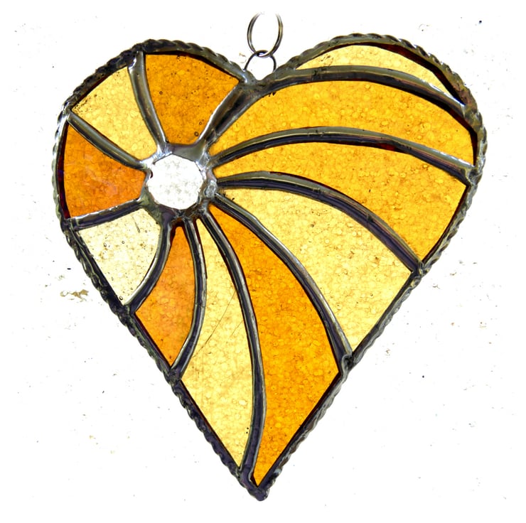 I've made the heart from all different types and shades of golden glass swirling out from a lovely gsparkling crystal.