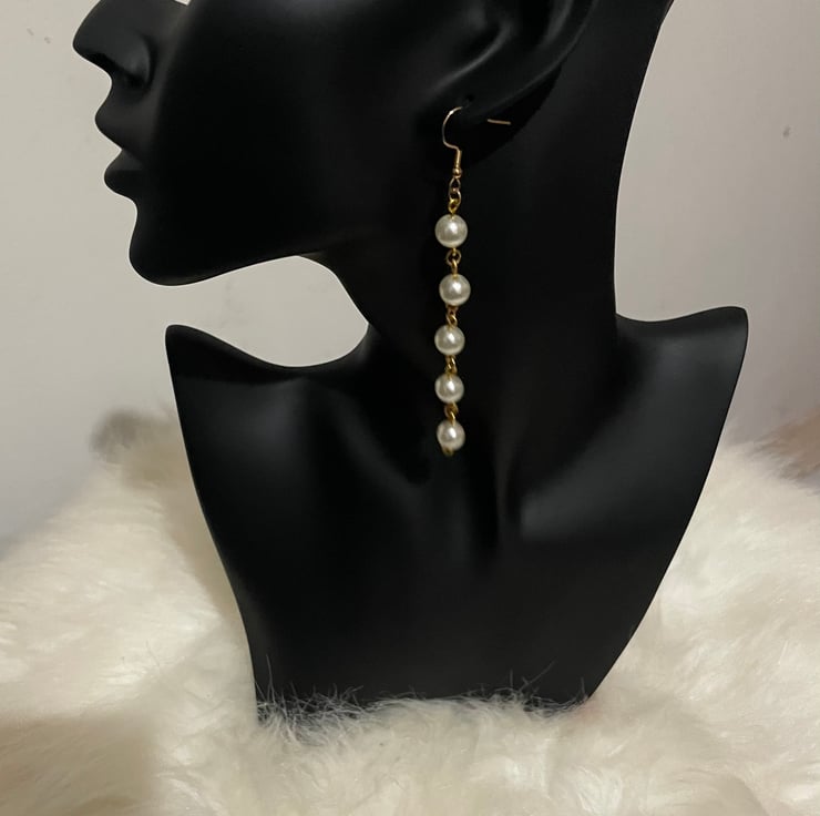 Elevate your style with these stunning Gold plated pearl earrings. The elegant design features a dangle/drop style with a chic white pearl as the main stone. The earrings are crafted with high-quality materials and are perfect for any occasion. These earrings are a must-have for any jewellery collection, whether you're dressing up for a special event or adding a touch of sophistication to your everyday look. The gold plated metal adds a subtle touch of glamour and the white pearl is timeless. Make a statement with these beautiful earrings and add a touch of class to any outfit.