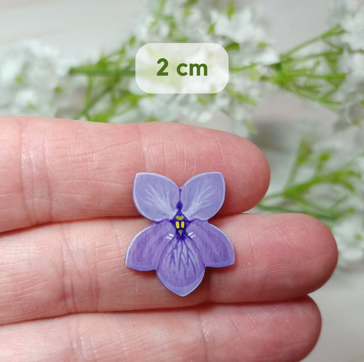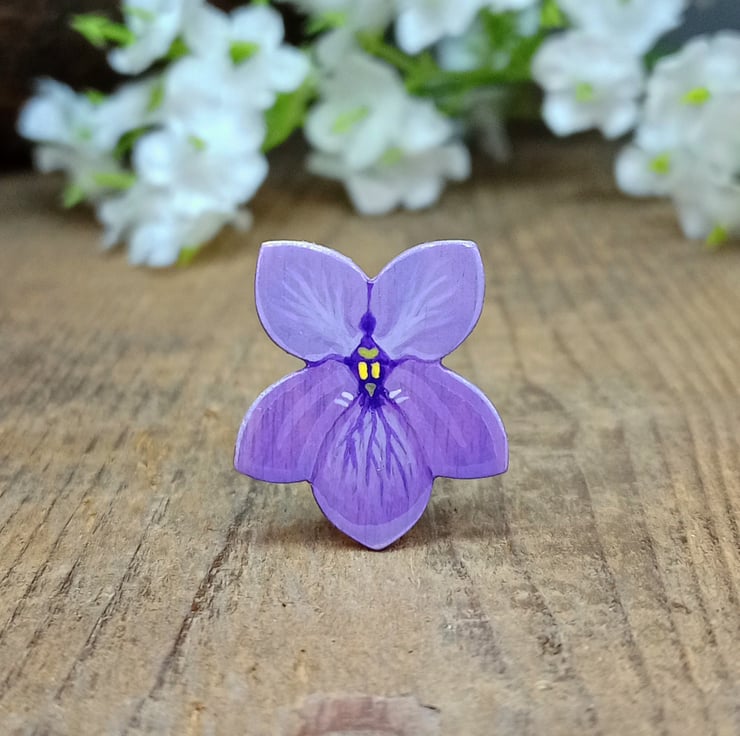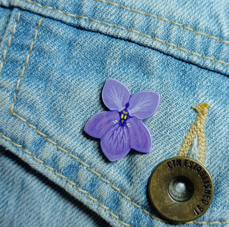 This hand painted violet pin would make a great February birthday gift as it is the birth flower for February. In the language of flowers these flowers mean 'thoughts of you', so you could give it to a friend or loved one to show you are thinking of them.