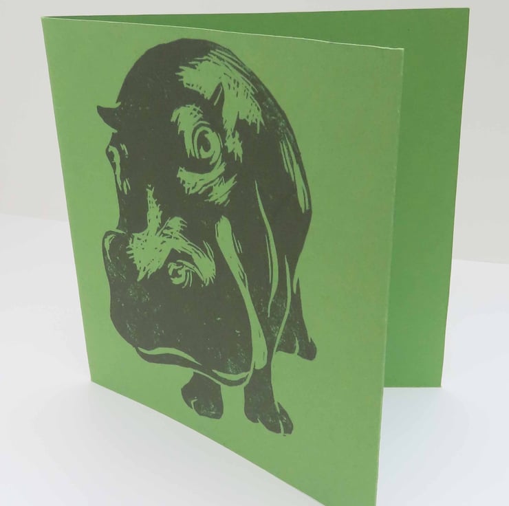 Printed on green card, supplied with a white envelope and is cellowrapped.