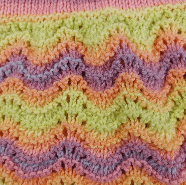 - Soft, baby-friendly acrylic yarn in muted rainbow tones of mauve, blue, pink, yellow, and peach
