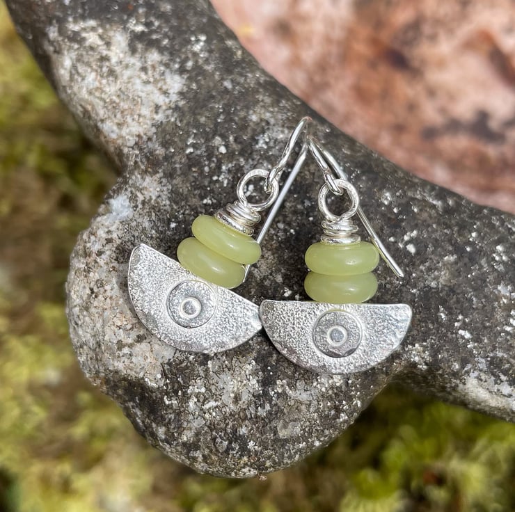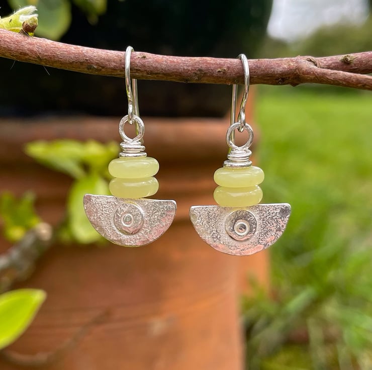 Sterling silver and pale yellow Jasper Ulu earrings.