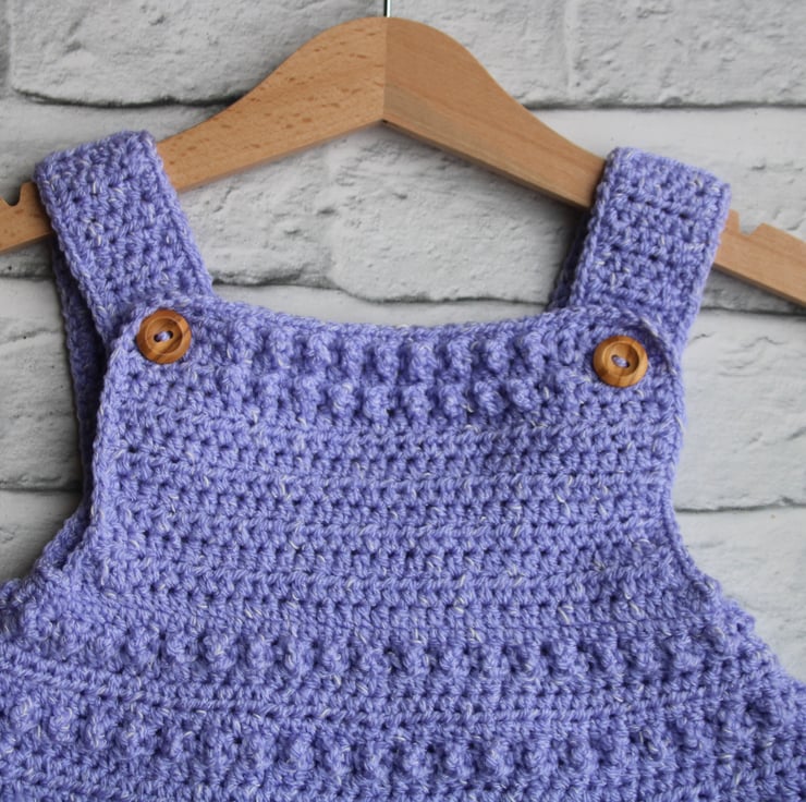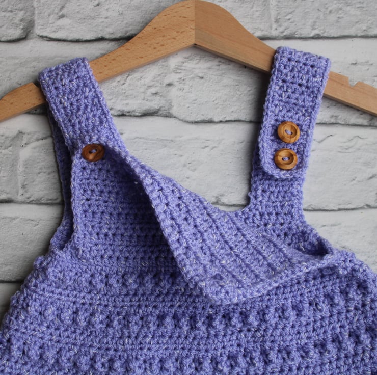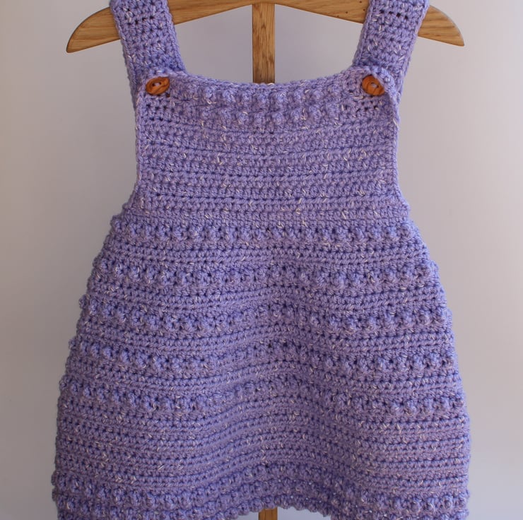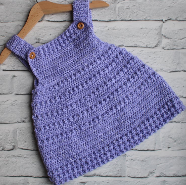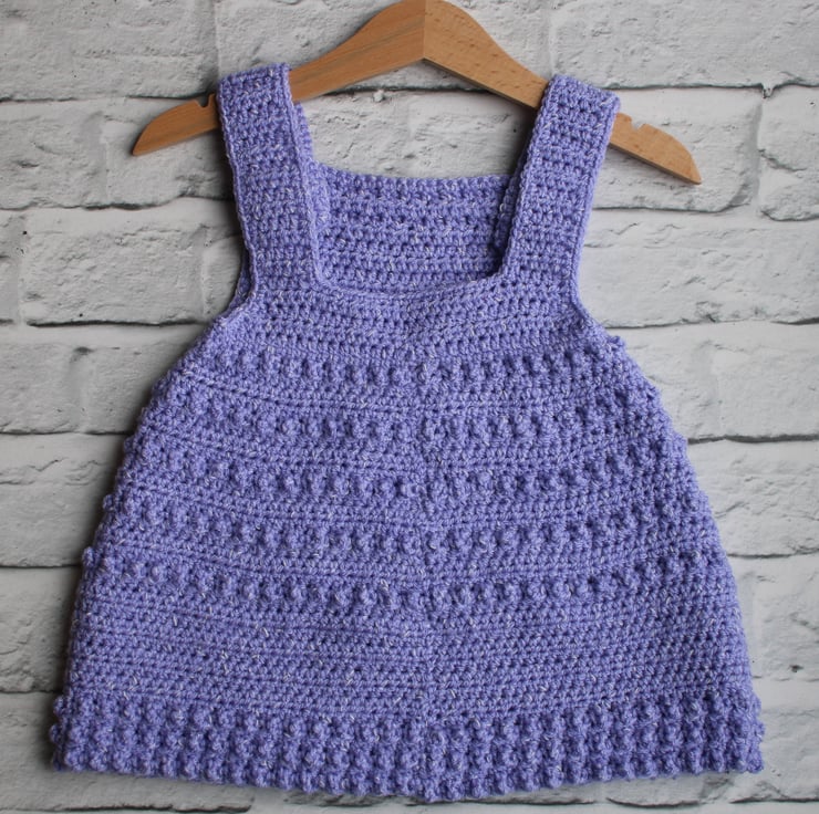 This crocheted pinafore features a delicate bobble design to create texture to the dress.