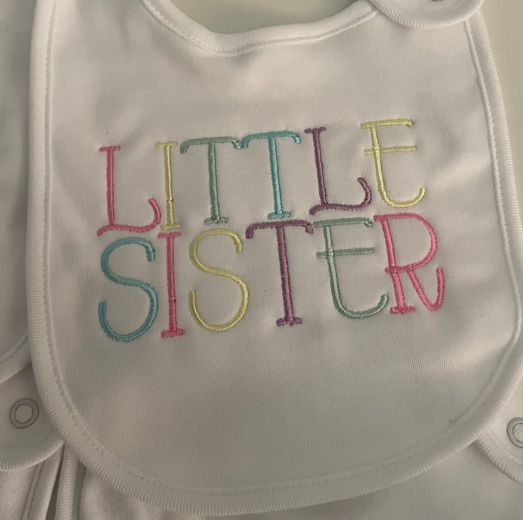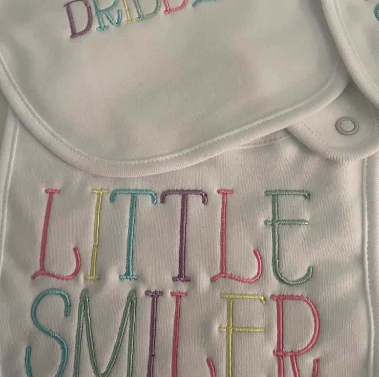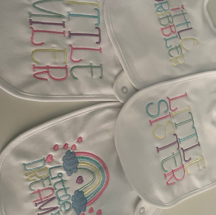 Baby bibs embroidered and can be personalised in colours of choice. Super cute rainbow pastel colours o. Listing. This can be changed to one colour or different colours to suit order.