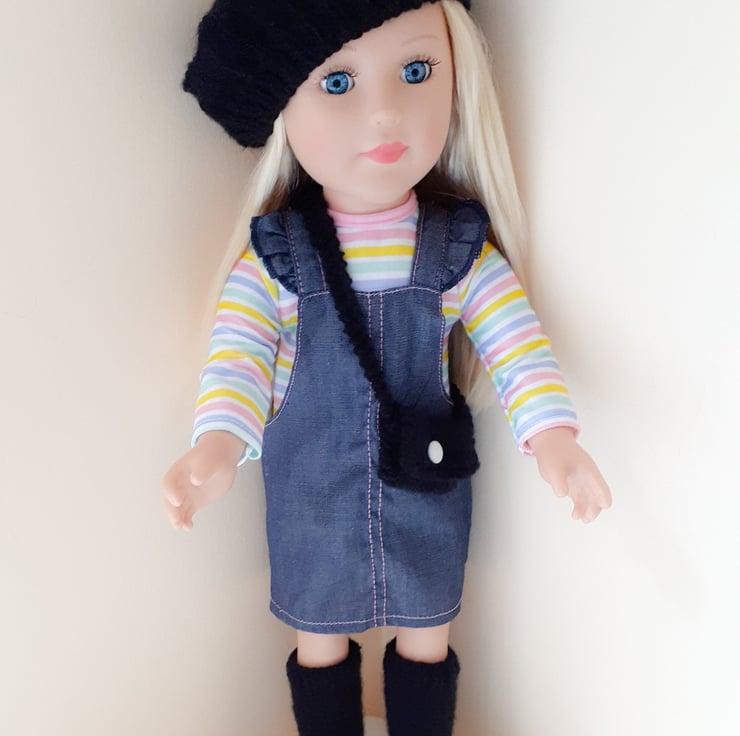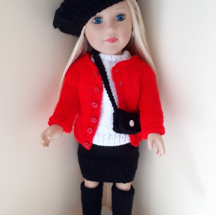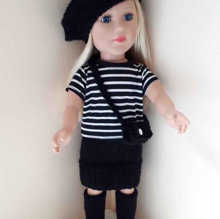 This hand knit PATTERN is for a bag for a Doll. To fit doll Height 46 cm or 18 inches. The bag is knitted in double knitting yarn using 3.25 mm knitting needles and is knit flat and seamed.