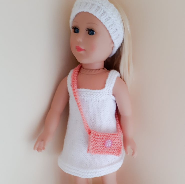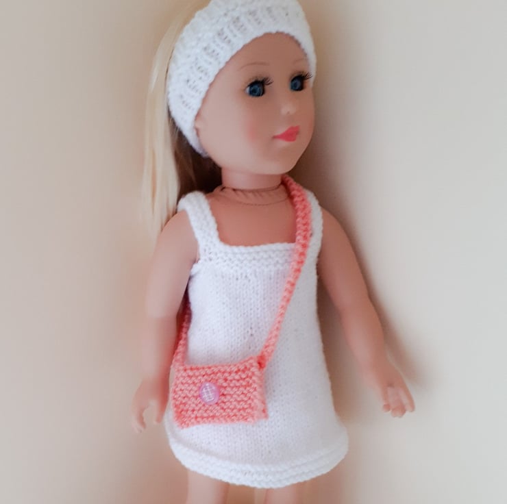 This hand knit PATTERN is for a bag for a Doll. To fit doll Height 46 cm or 18 inches. The bag is knitted in double knitting yarn using 3.25 mm knitting needles and is knit flat and seamed.