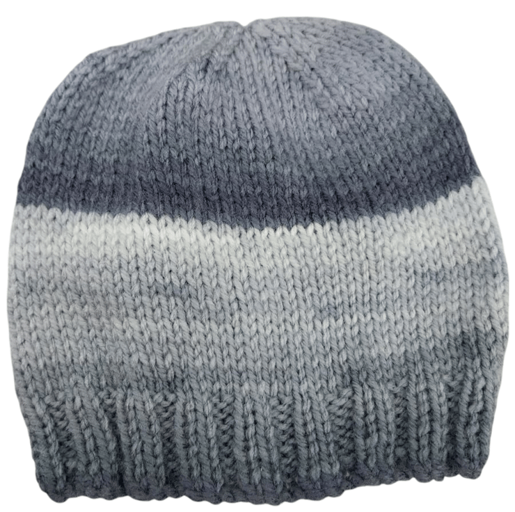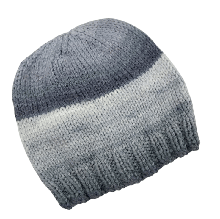 Crafted with care and a touch of love, this hand-knitted baby hat in a charming grey and white ombre design is a must-have for your little one. Made from self-striping yarn, this cosy beanie is the perfect winter accessory to keep your baby snug and stylish during chilly days. Embrace the warmth and style with this adorable addition to your baby's wardrobe.