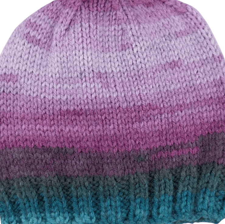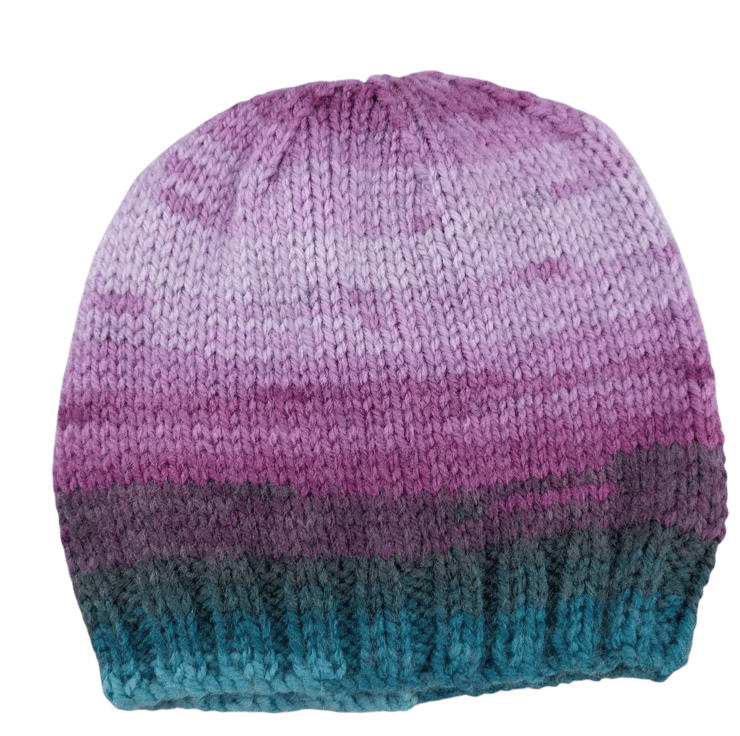 Purple and Blue Baby Hat Hand Knitted with Self-Striping Yarn