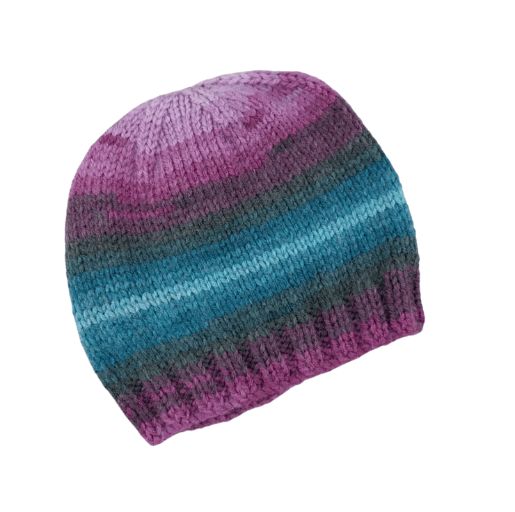 Envelop your baby's head in both warmth and style with this delightful hand-knitted baby hat. Meticulously crafted using self-striping yarn in calming shades of purple and blue, this beanie serves as the ideal winter accessory to keep your little one snug and comfortable. Let this one-of-a-kind piece infuse a sense of handmade affection into your baby's wardrobe this season.