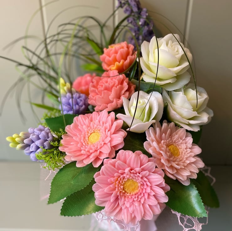 Add a touch of timeless beauty to your surroundings or surprise a loved one with our charming floral soap bouquet.