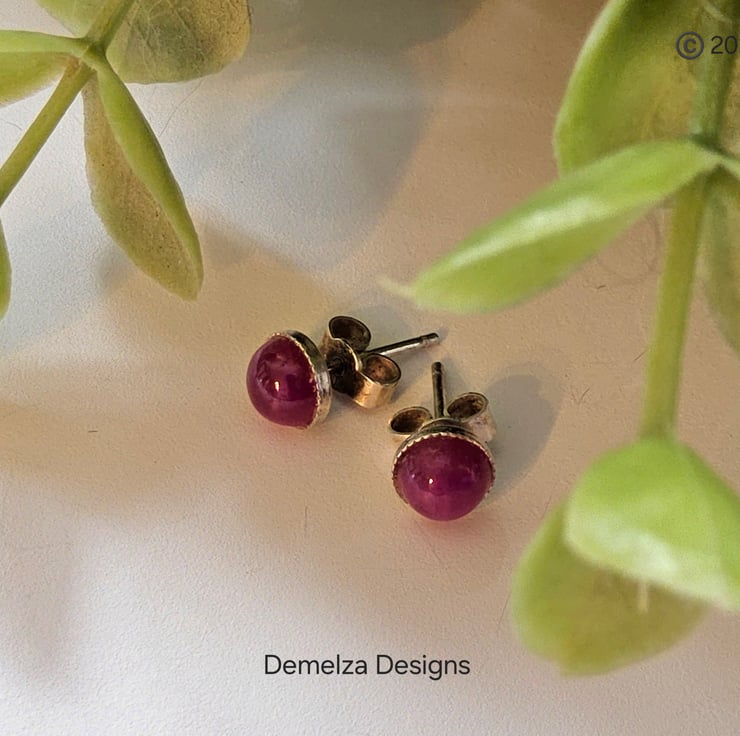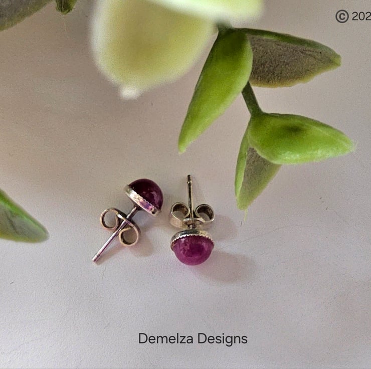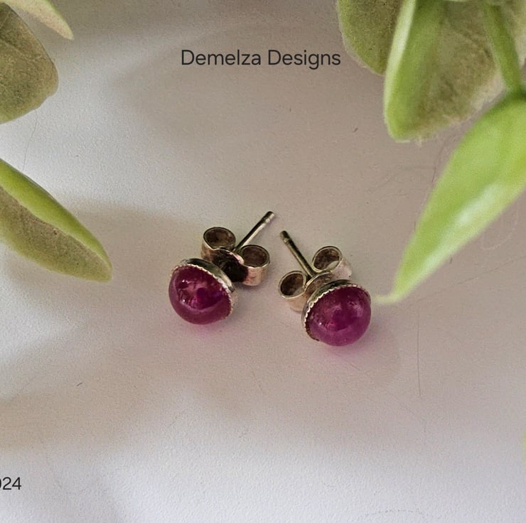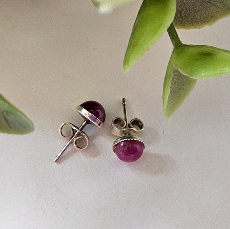 These feminine earrings have been hand crafted in Cornwall using 5mm genuine African ruby caboshon cut gemstones.