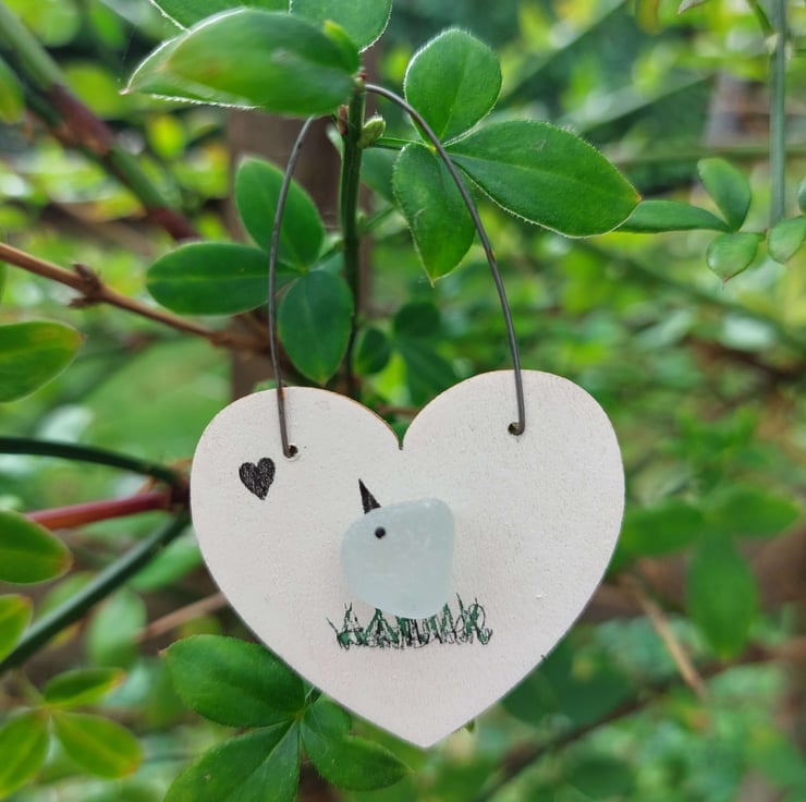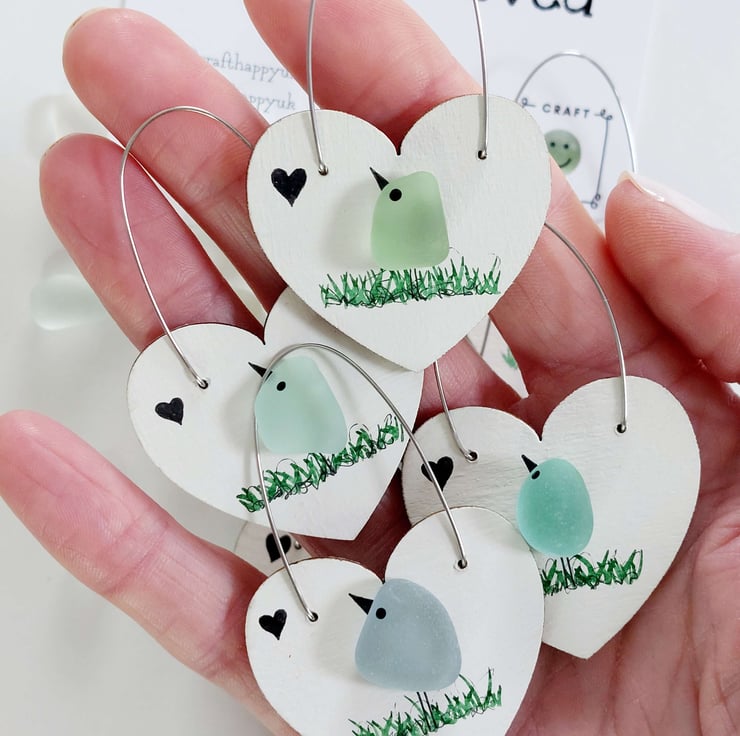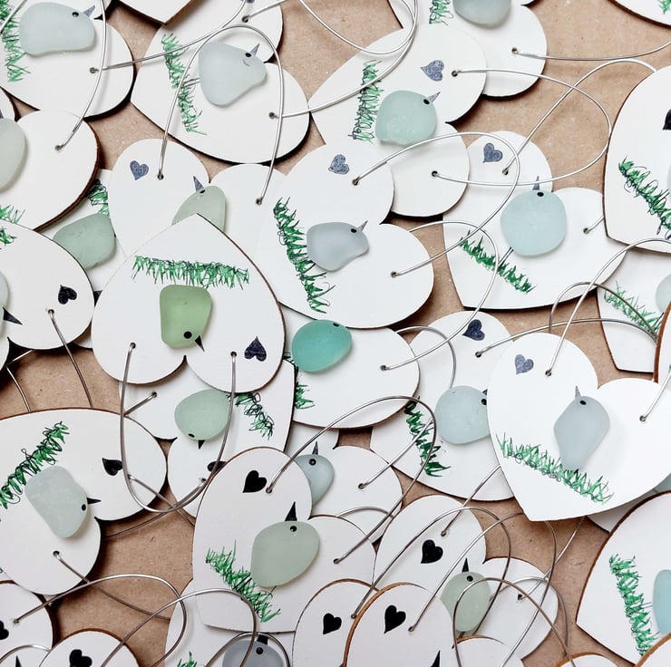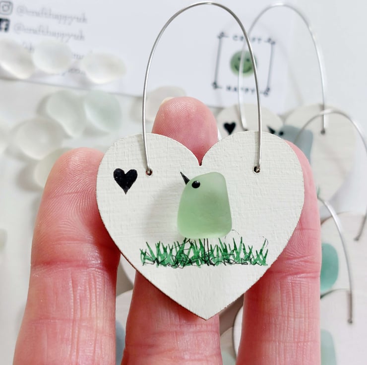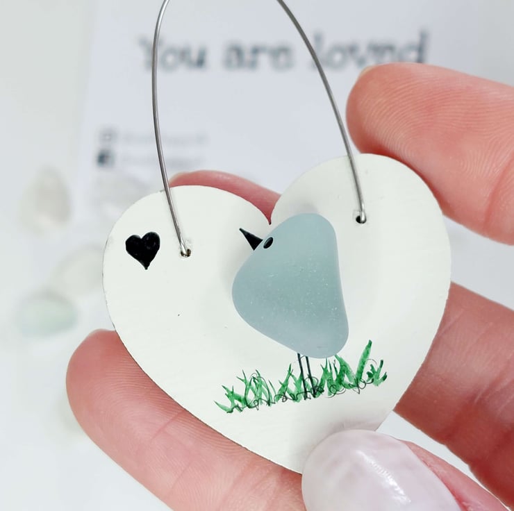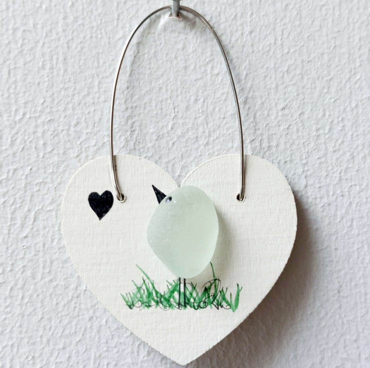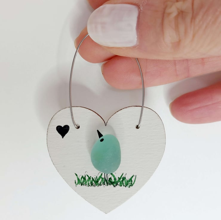 This unique and individually crafted sea glass bird ornament / gift tag has been made with a piece of perfectly tumbled and frosted aqua sea glass I have hand picked on my beachy travels, carefully selected for its shape, before being delicately placed. The extra little details on this design have been hand painted with watercolours and the whole design is complemented with wire so it can be hung or used as a gift tag. It's an ideal, one-of-a-kind gift that's both charming and cute. Please check product dimensions provided in the description below.