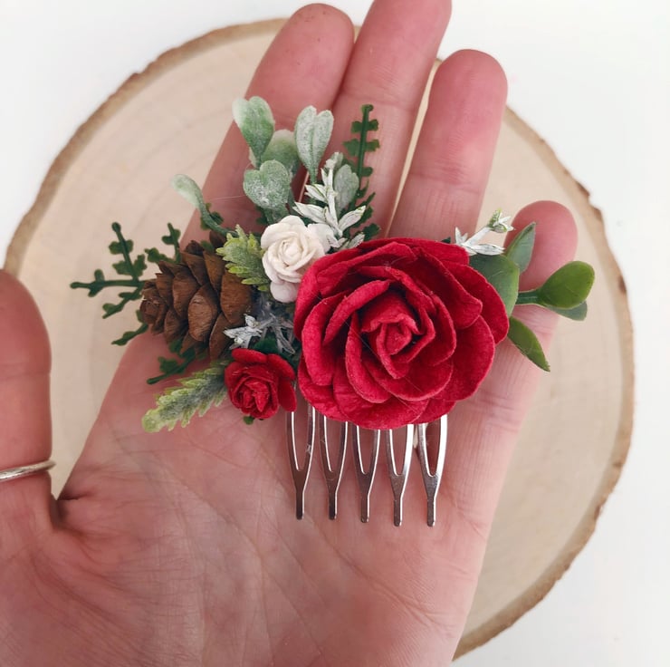 This flower hair comb would be perfect for a Christmas time wedding! Ideal for your bridesmaids, flower girls or for the bride herself!