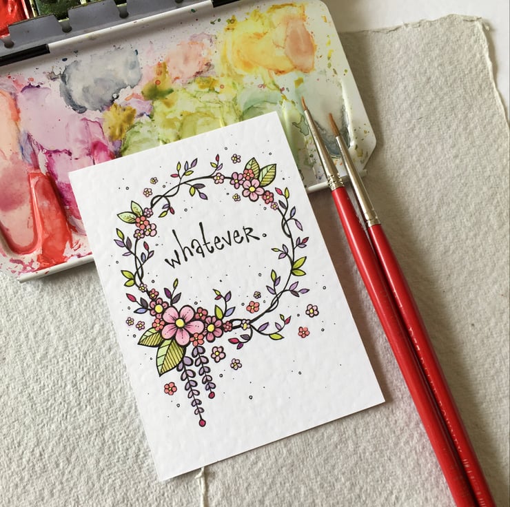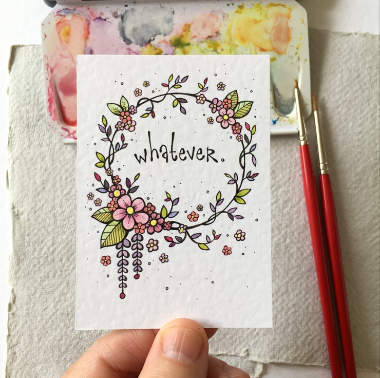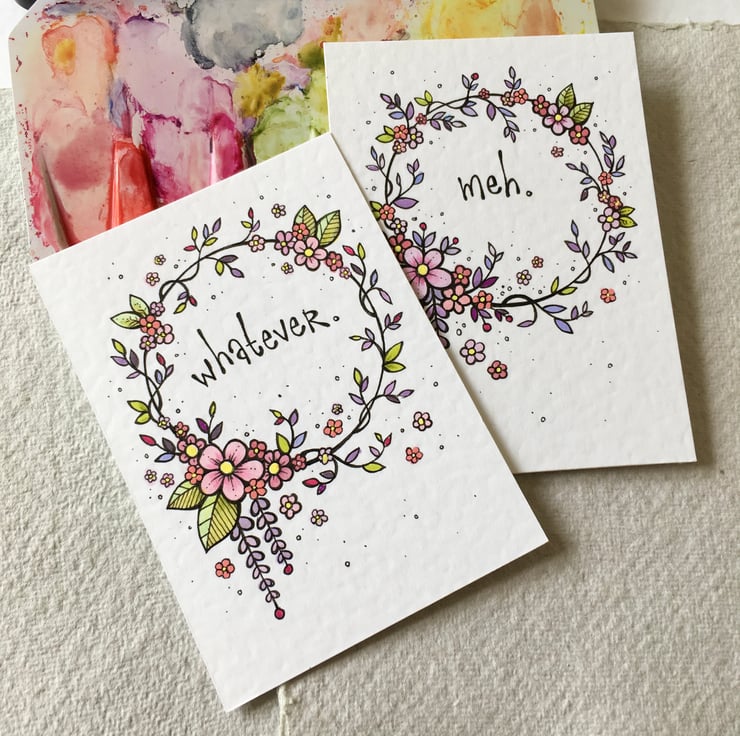 original artwork on textured white 300gsm cardstock. drawn with a tiny 0.05 nibbed pen, and carefully coloured with art pens and pencils.