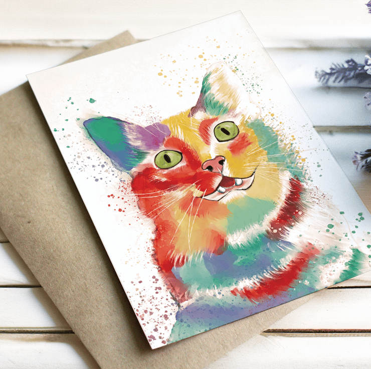 A beautiful watercolour card of my beloved cat, who posed with a smile and I turned it into a joyful painting. This is a wonderful card for cat lovers and can work for various events and occasions as it is blank on the inside.