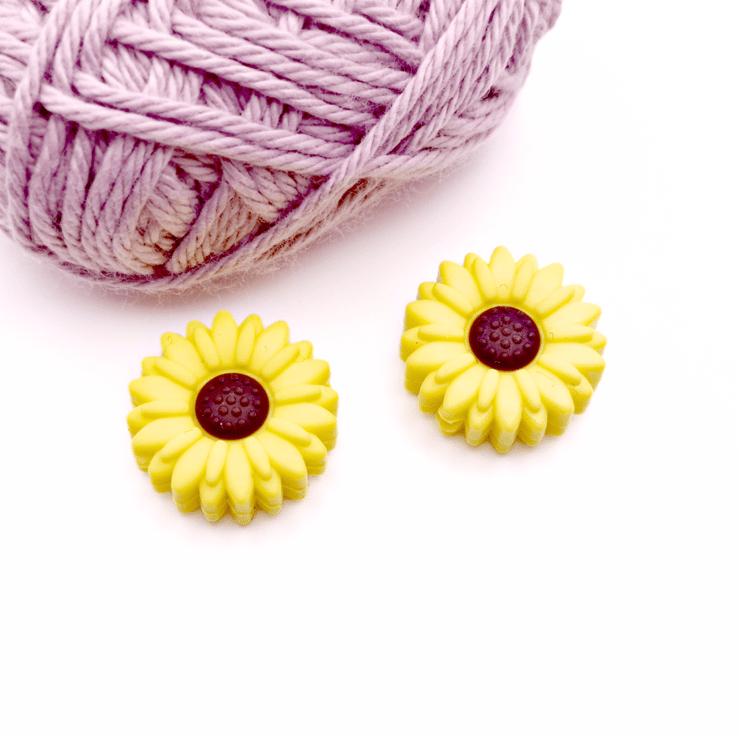 A set of 2 Daisy knitting needle stoppers, or end caps. The MUST HAVE item for all knitters. These are a great knitting accessory, and would also make a great gift for any fellow knitter!