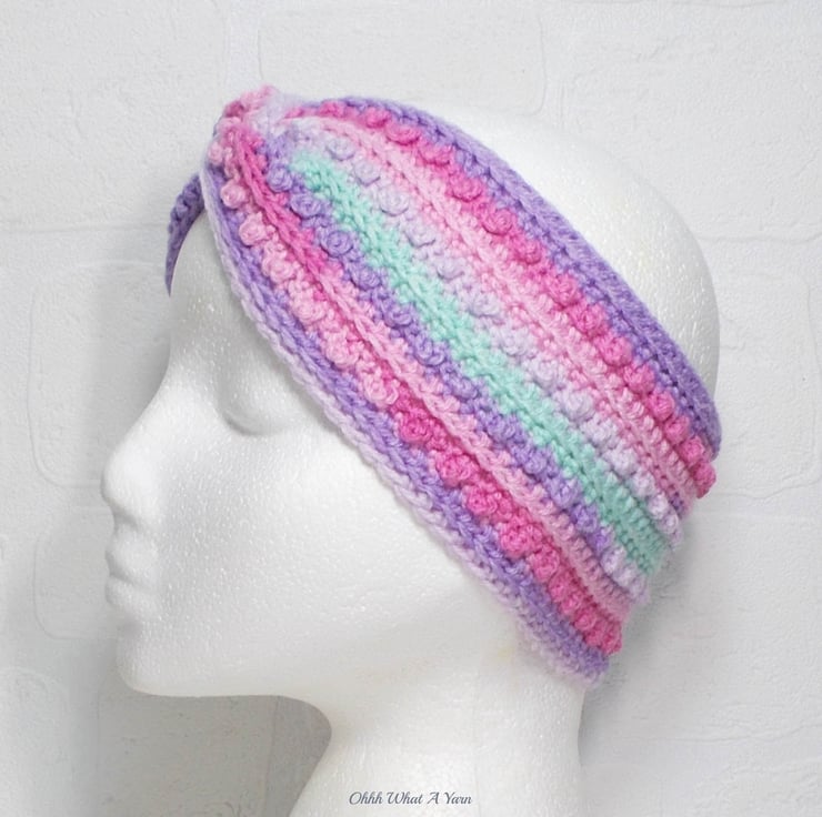 The pattern has ridges and small bobbles creating a lovely effect and it has a twist that can be worn either at the front, back or side of your head.