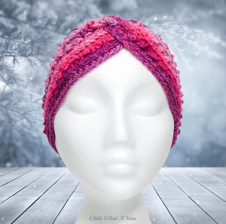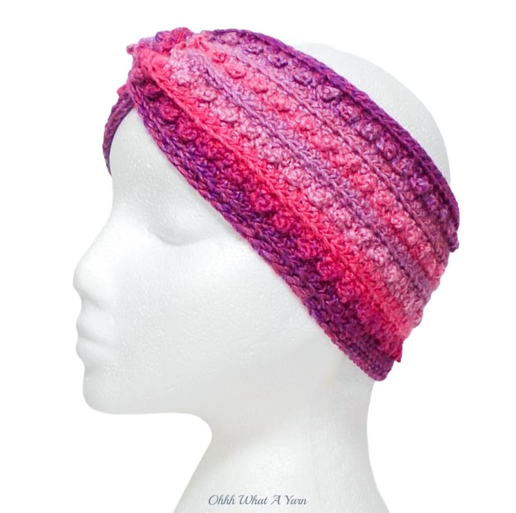 The pattern has ridges and small bobbles creating a lovely effect and it has a twist that can be worn either at the front, back or side of your head.