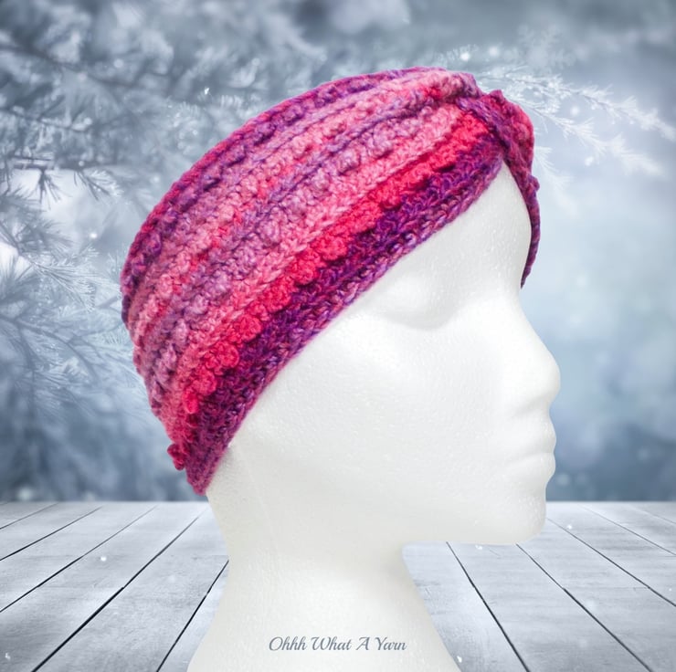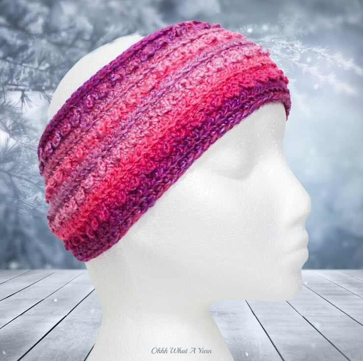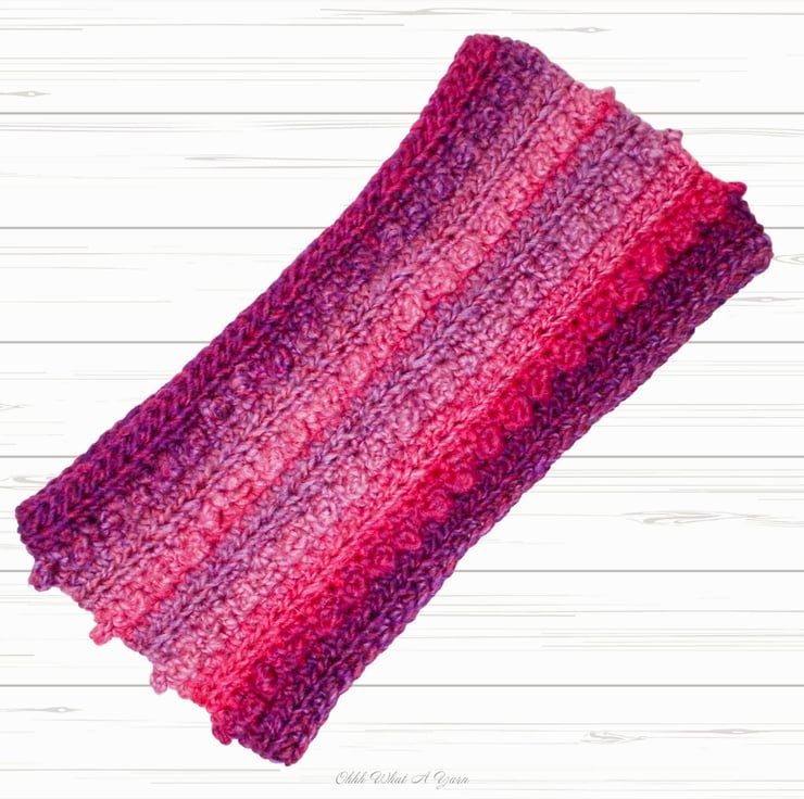 This gorgeous one size ladies ear warmer/headband has been crocheted using a gorgeous 100% premium acrylic yarn in gorgeous shades of pink.