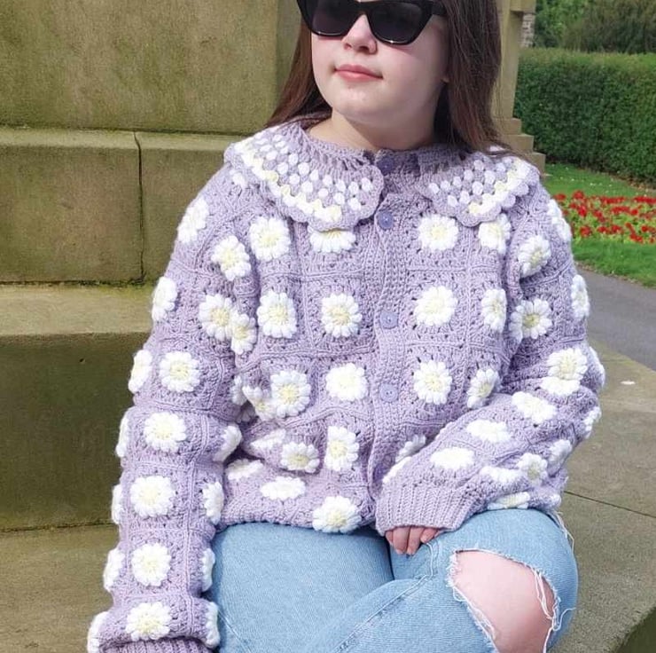 Daisy granny square cardigan with cute collar this is a pattern in pdf form that will be emailed upon purchase