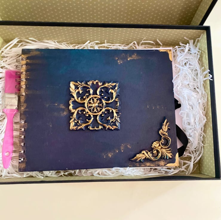 Embark on a magical creative journey with our Navy Blue Hand-Painted Art Journal.