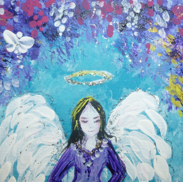 Created using quality artist's paints and glitter, it measures approximately 8" x 10".