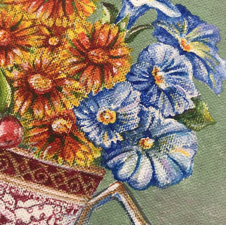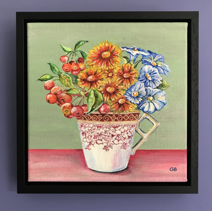 Original Floral Painting, 'Autumnal Fruits & Flowers', Acrylic Flower Painting