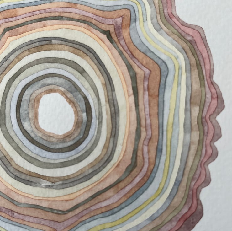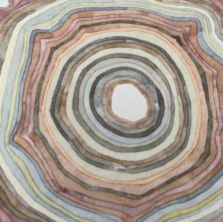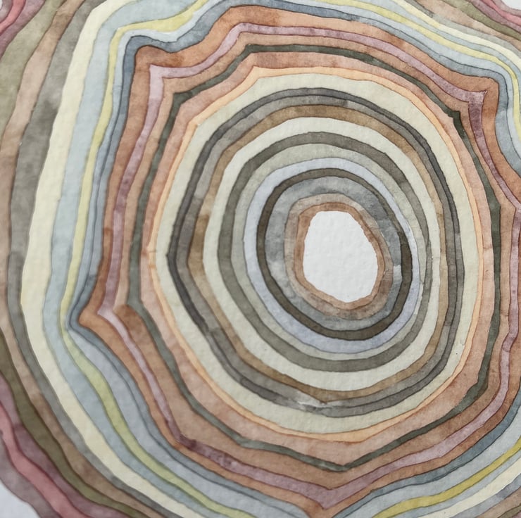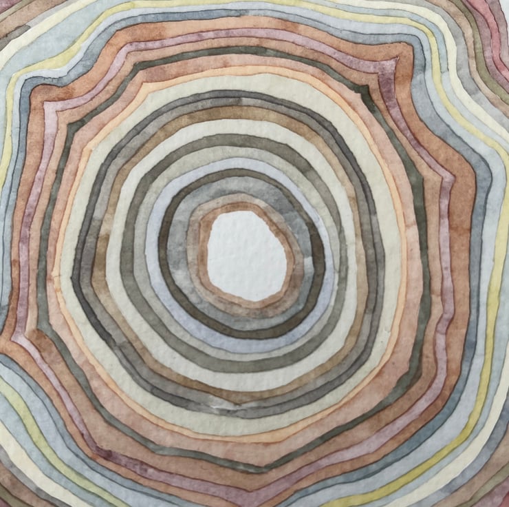 An original watercolour painting of a circular pattern . The painting was made with watercolour paints onto acid free 300gsm watercolour paper. The paper measures 15cm by 16cm and would make an ideal gift for someone. The painting will be sent inside a board back envelope. Colours on screen may vary slightly from the artwork.