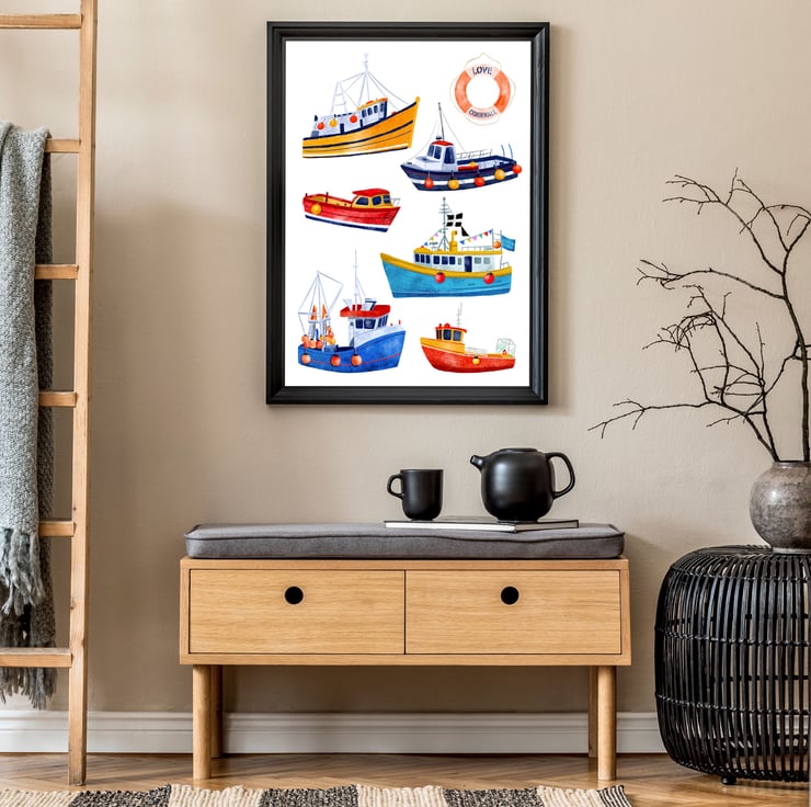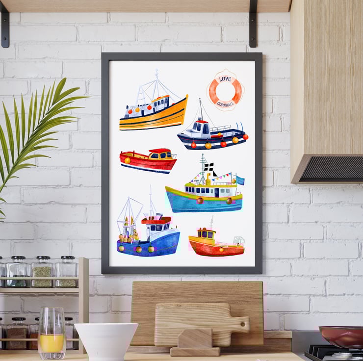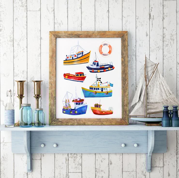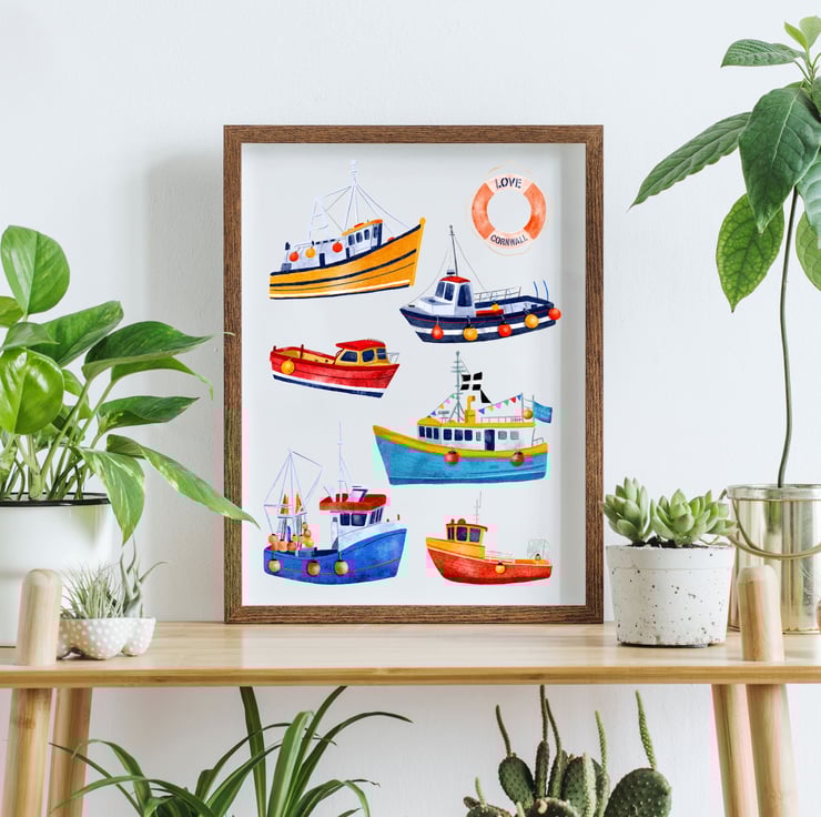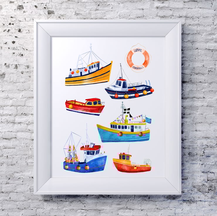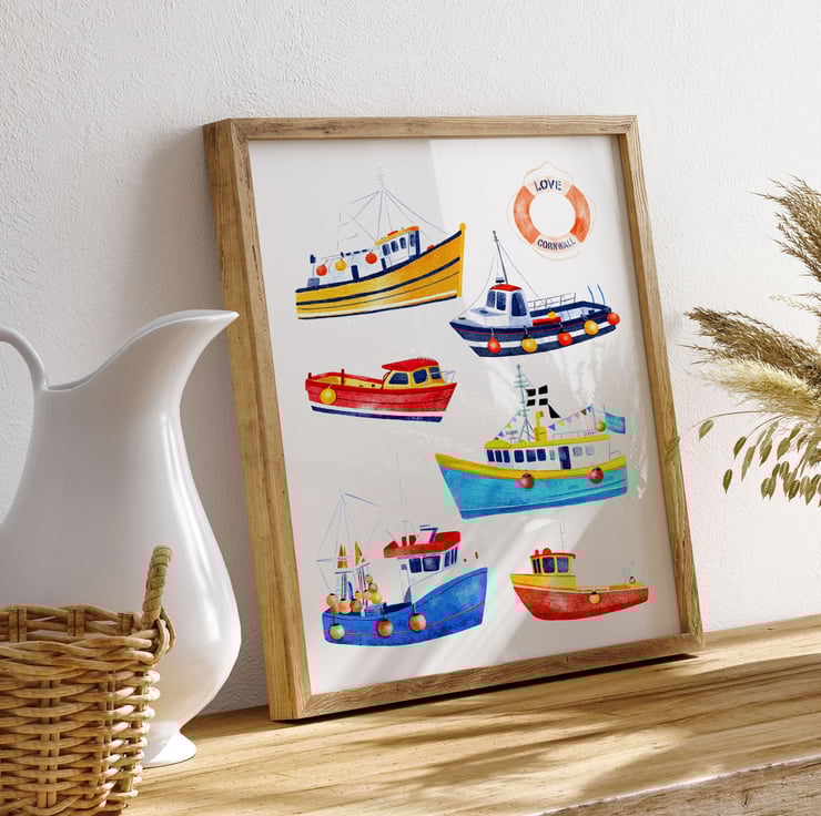 I just love seeing all the fishing boats in Newlyn harbour and they inspired me to create this art print.