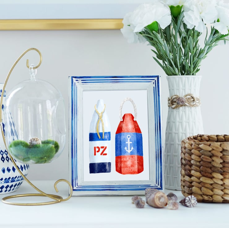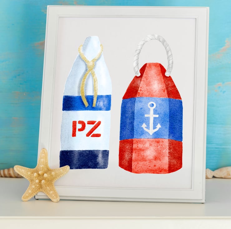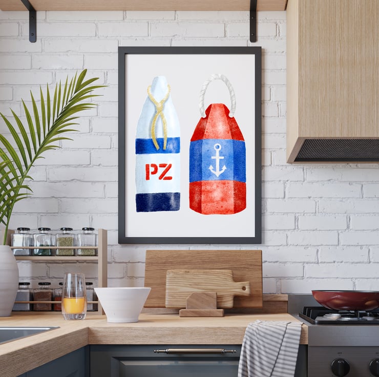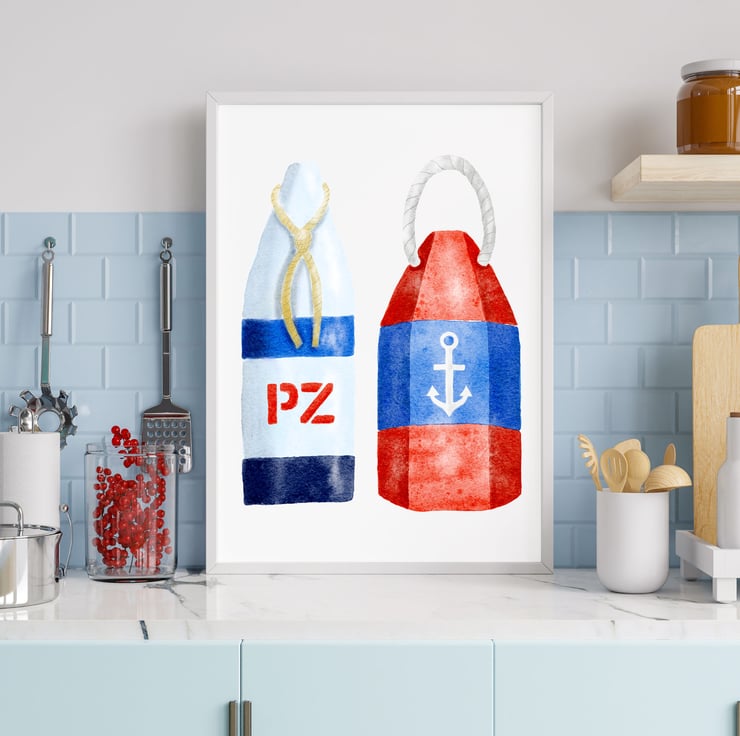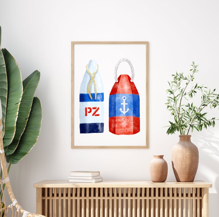 A giclée art print of my original illustration of Lobster Buoys in a watercolour style.