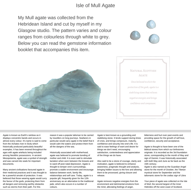 All of my designs are made with natural Scottish gemstone and recycled sterling silver. Please read the inspiration section for more information on my materials and processes.
