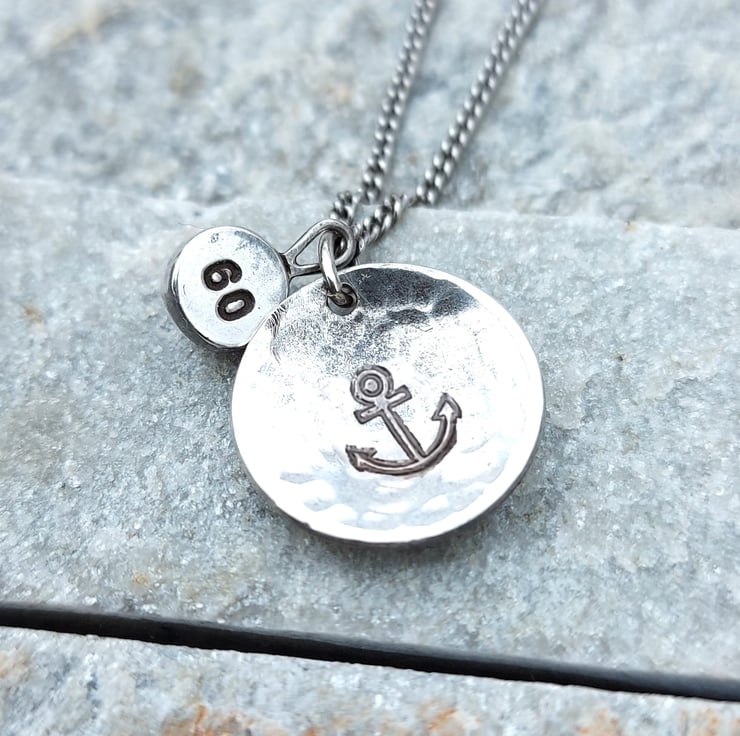 This hammered and domed disc necklace is stamped with a simple anchor design, making a fitting gift for any seafarer, or beach lover. You can personalise it further by adding a 3mm stamp or two 1.5mm stamps to your setting or chain tag and even add a personal message to the inside of your box.