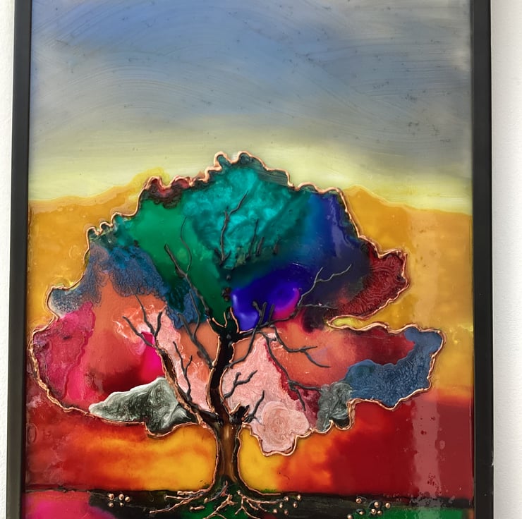 Here we have a colourful painting of an oak tree , designed and painted at my studio.