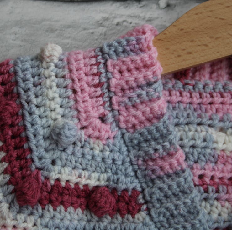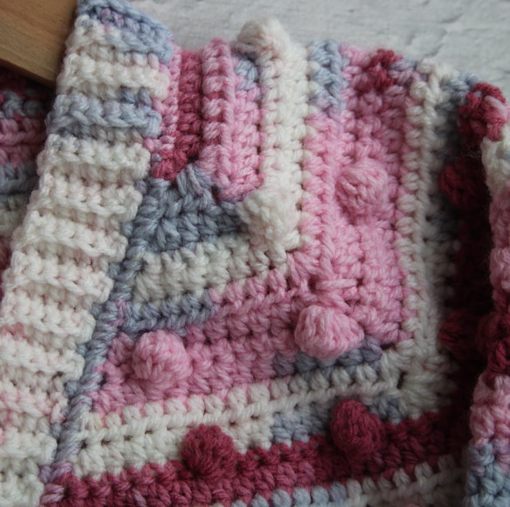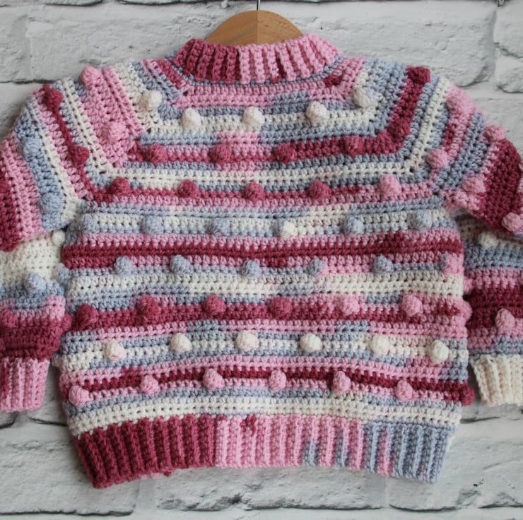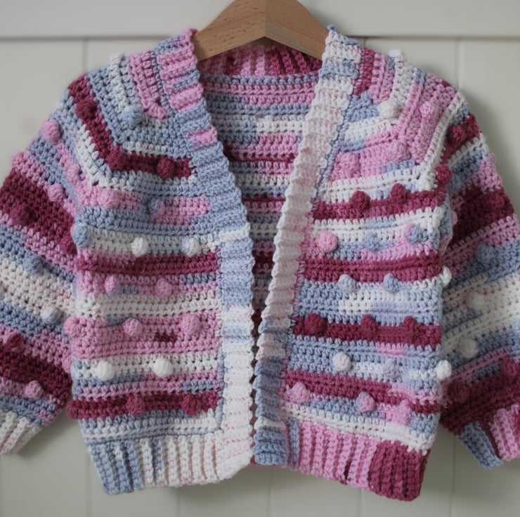 A super cute and colourful bobble cardigan for a toddler aged 1-2 years.