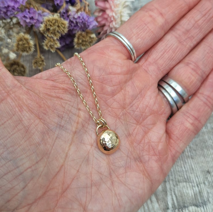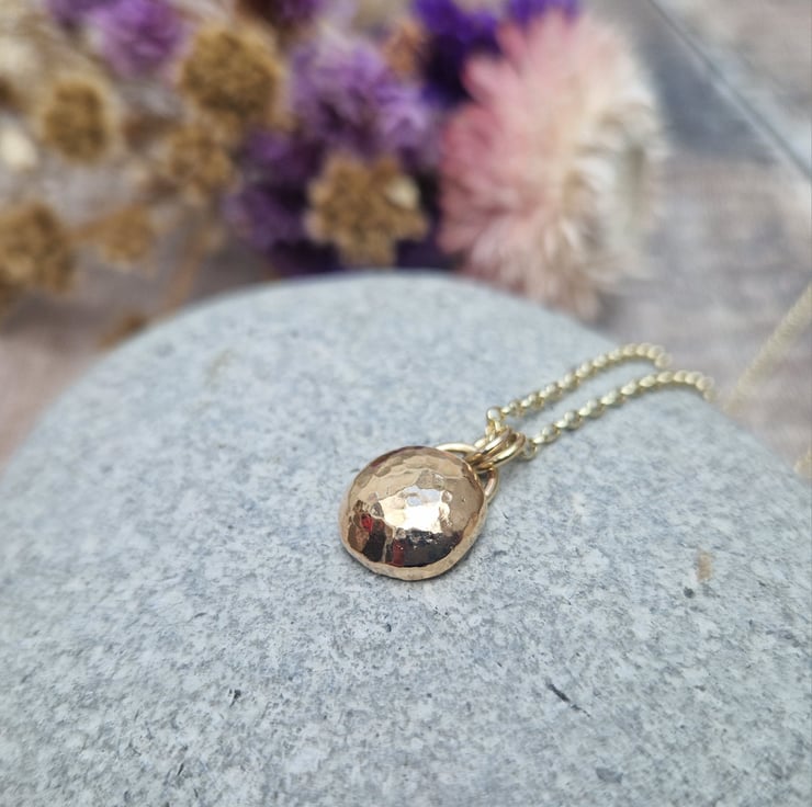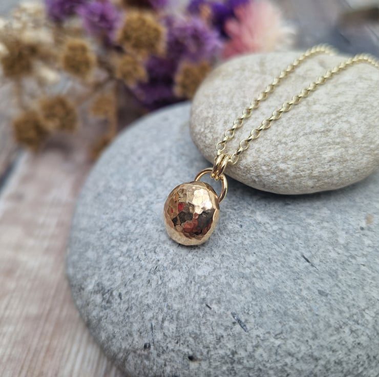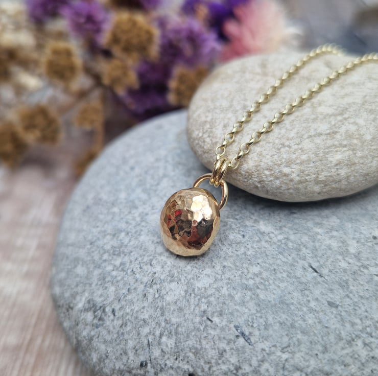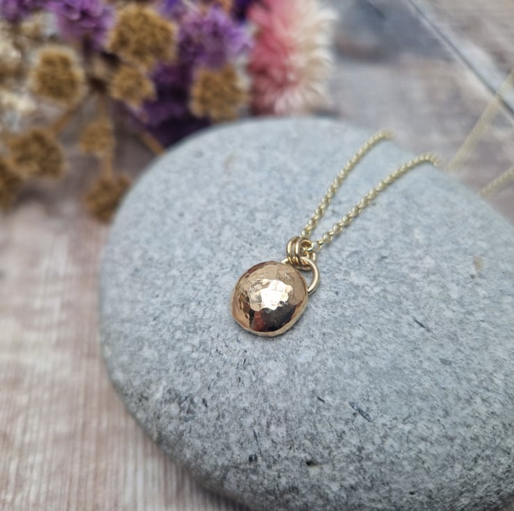 Solid 9ct Recycled Gold Hammered Pebble Necklace