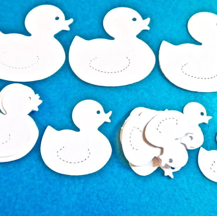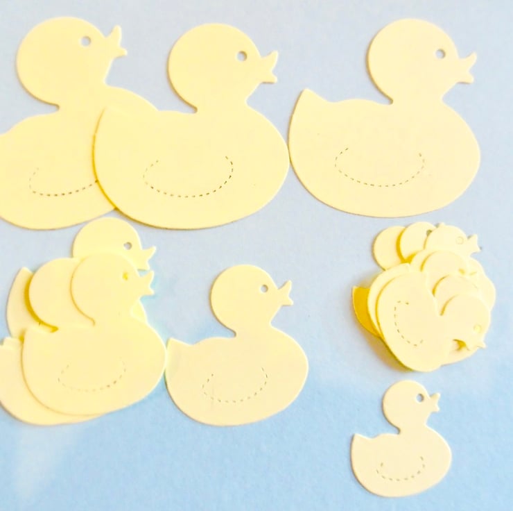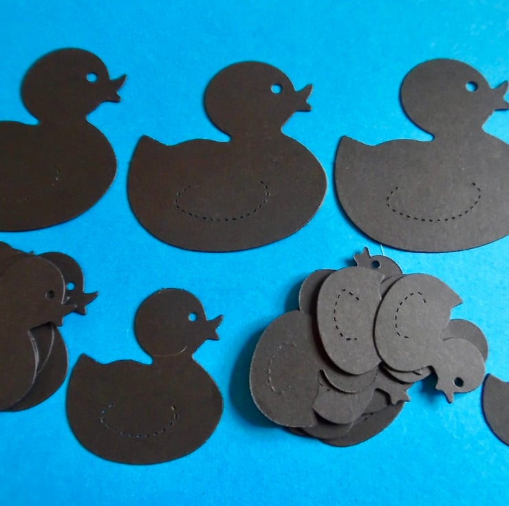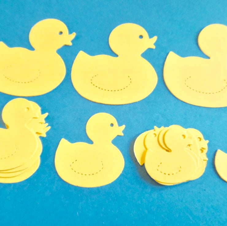 These are cut in the shape of a rubber duck bath toy but will also be suitable for a cute, whimsical or comic card .