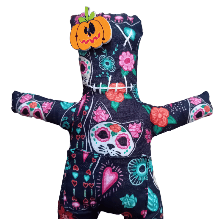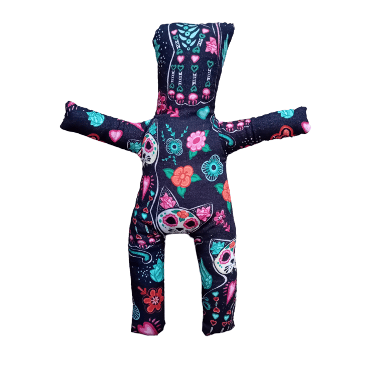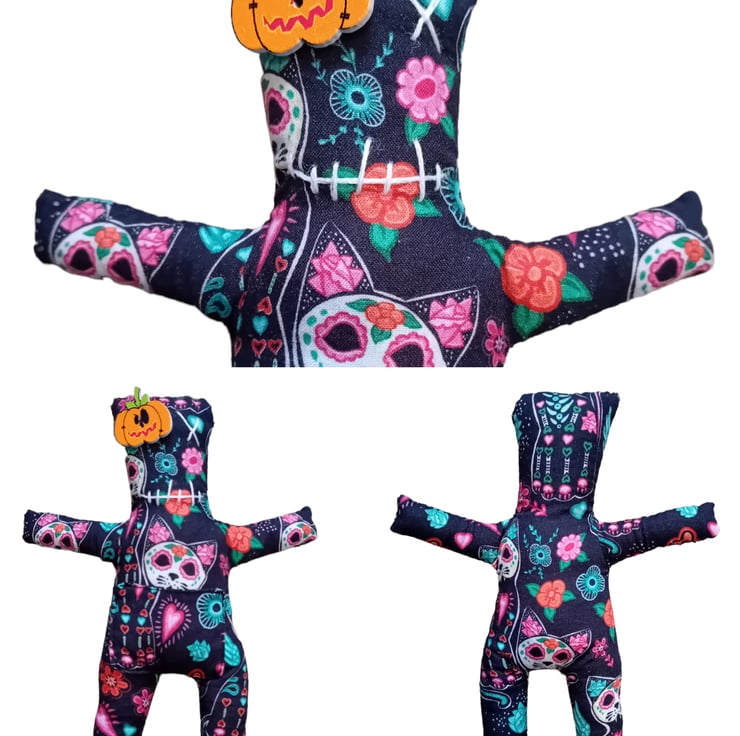 A worry doll in the style of a voodoo doll. Write your worries on a piece of paper and put it in their pocket to take your worries away. Dolls are approx 9 inches tall.