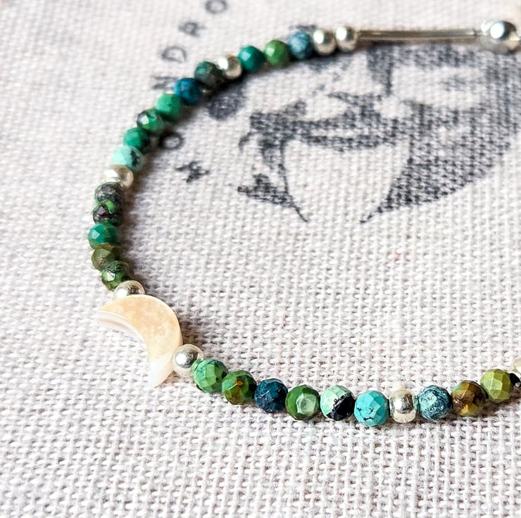 Welcome to my listing for this one-of-a-kind handmade celestial-inspired African Turquoise gemstone beaded bracelet!