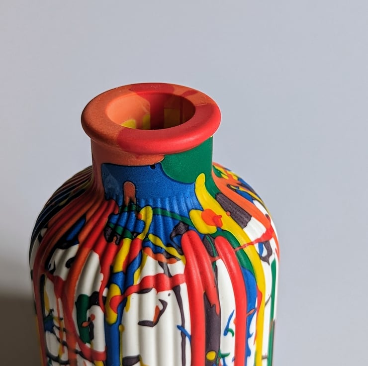 While exploring the use of bright and bold colours in my work, I wanted to create a unique piece that brought the wonder and joy of rainbows inside the home. This bud vase is a simple, elegant vessel that captures the essence of a rainbow — vibrant, joyful, and full of life.