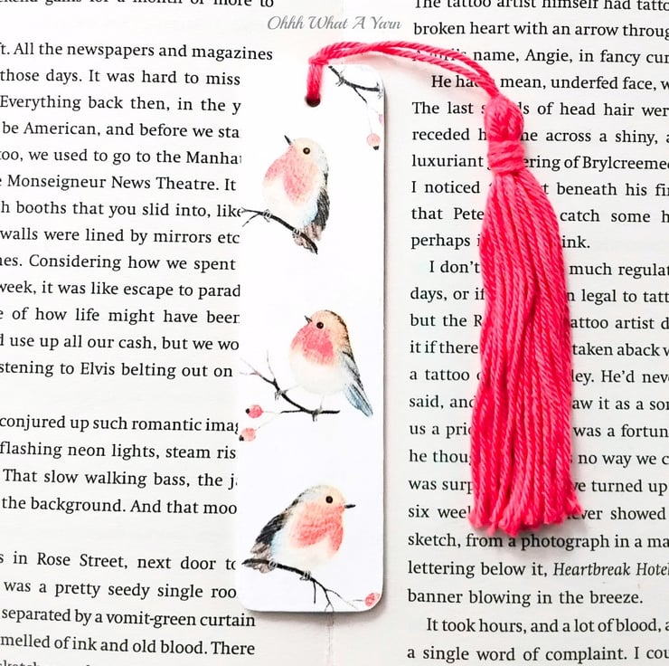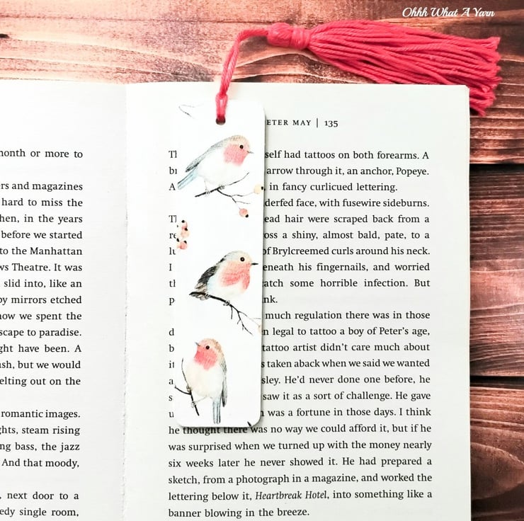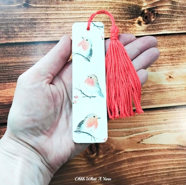 I have painted the bookmark with white acrylic which then makes the colours pop when I added the decoupage robins design. I have then sealed the bookmarks with multiple coats of matt varnish for protection and added a satin tassel in coordinating colours.